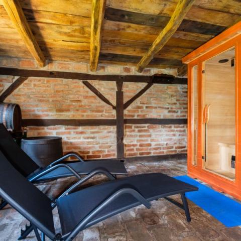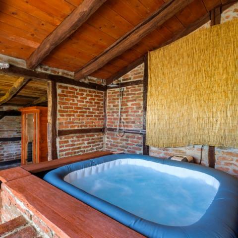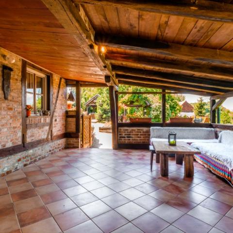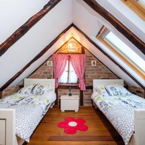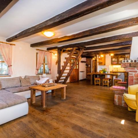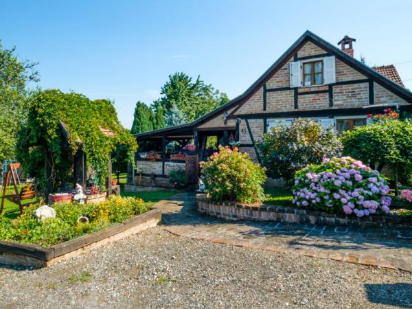 Het huis is gebouwd van oude eiken en rode bakstenen, is met veel liefde gerestaureerd en is nu een perfecte combinatie van traditie en comfort. Op de zolder is er een open ruimte met een tweepersoonsbed en een kamer met twee kleinere bedden. Zichtbare balken en stenen geven een speciale charme. De ruime begane grond bestaat uit een keuken, een woonkamer, 1 slaapkamer en een gedeelde badkamer. In het midden van de woning bevindt zich een grote open haard voor de hoek met een hoekbed dat kan dienen als 2 extra bedden. Hier is een tv en een projector. Een kleine, handgemaakte keuken bevat alles wat u nodig heeft: een kookplaat, een gerecht, een vaatwasser, een waterkoker en bestek, kommen en potten. Sommige benodigdheden zoals zout, peper, meel, rijst, olie ... zullen u altijd verwelkomen. Achter de slaapkamer is een tweepersoonsbed en een gedeelde badkamer met een douchecabine, een wasmachine en een droger. Verbonden met het huis is er een ruim terras met een grote tafel, banken en een gegrilde barbecue. Ruime tuin, schommels, kleine boomgaard zijn slechts enkele van de inhoud van de buitenkant.