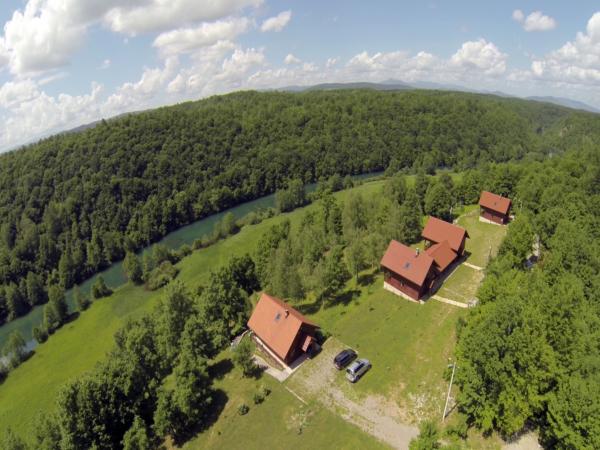 Volledig ingerichte en moderne vakantiehuizen in de ongerepte natuur aan de rivier de Mrežnica. Huur drie houten huizen. Elke kamer is 140 m2. Boven zijn drie slaapkamers op de begane grond woonkamer, keuken en terras. Na een badkamer op de eerste verdieping en de begane grond. De keuken is volledig uitgerust. Gasten kunnen gebruik maken van de grill. Naast het huis is een speeltuin voor voetbal, volleybal en badminton. Aan de voorzijde van een groot terras is een zwembad 10x4 m. Aanpassing van de promenade langs de rivier. Wij verhuren kajaks en mountainbikes. Voedsel kan vooraf worden besteld.