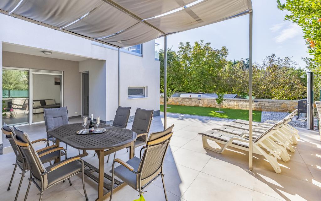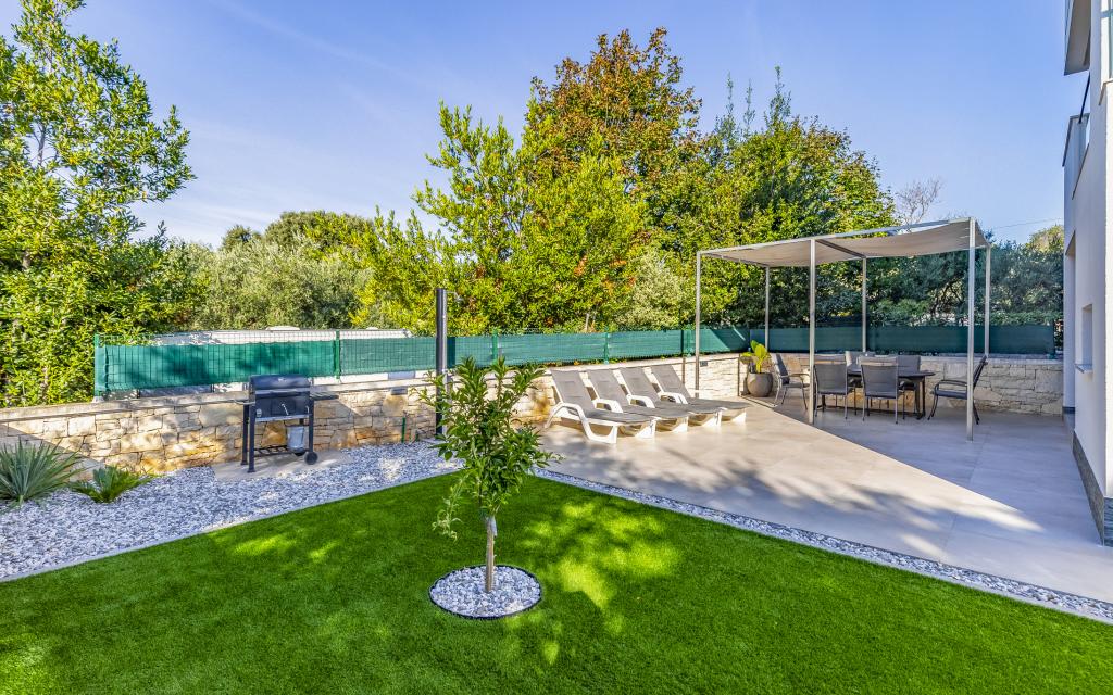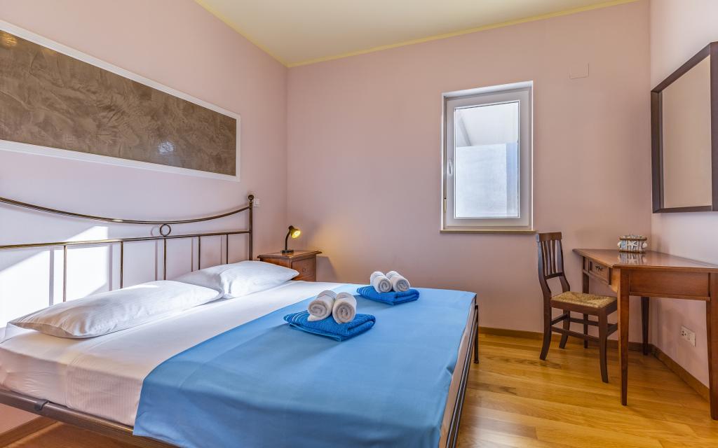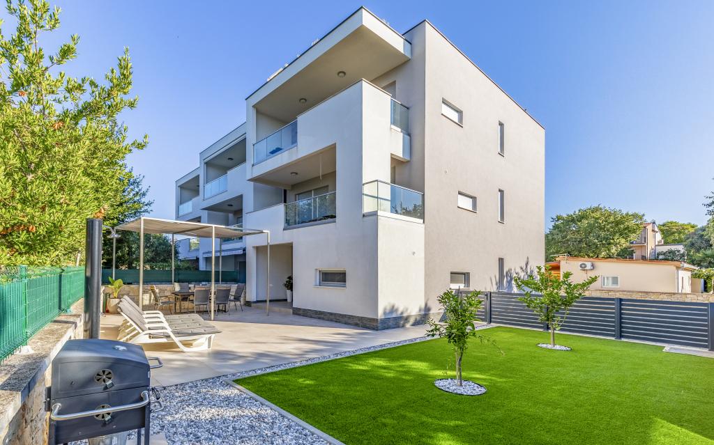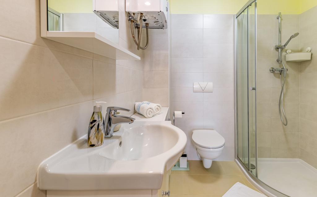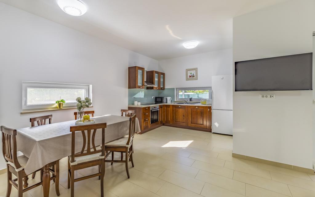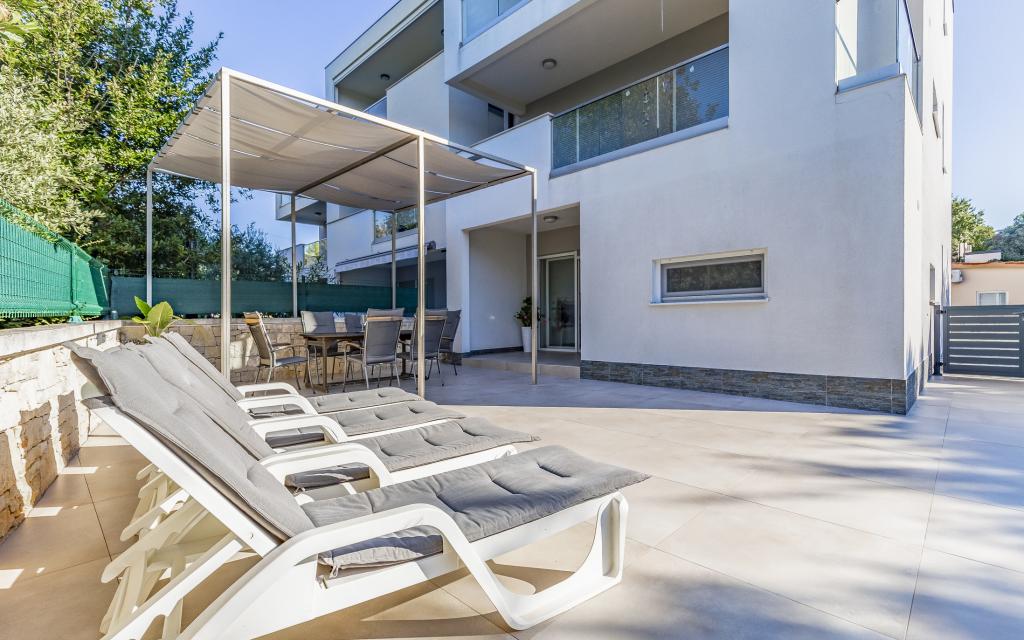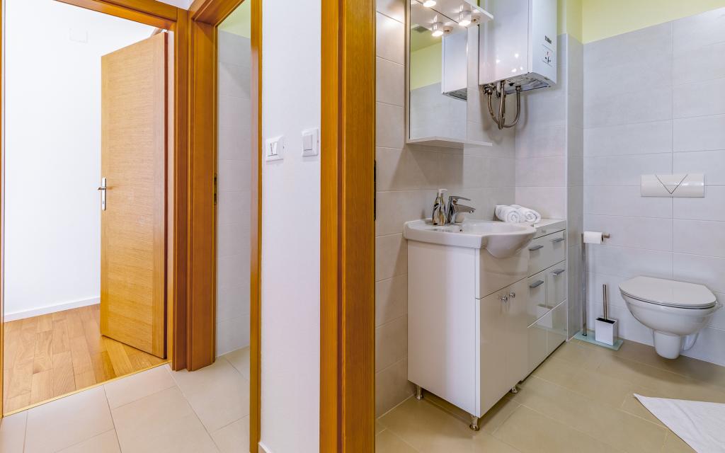 Volledig en bovengemiddeld gemeubileerd appartement (80 m²) op een uitstekende locatie in een rustig deel van Banjol, op slechts 5 minuten (300 m) lopen van de mooiste stranden in de omgeving. Het appartement bevindt zich op de begane grond van een woongebouw met slechts drie appartementen. Het appartement beschikt over een eigen tuin (100 m²) met een terras, tafel, ligstoelen, buitendouche en barbecue, wat zorgt voor aangenaam sociaal contact met veel privacy en is met name geschikt voor gezinnen met kinderen. Er is een privéparkeerplaats naast het gebouw met directe toegang tot de tuin en het terras. De tuin is in 2024 volledig gerenoveerd. Het gehele gebouw is beveiligd met een veiligheidshek (toegang met kaart). Het appartement beschikt over 2 slaapkamers met een tweepersoonsbed, 2 badkamers met toilet en douche, een ruime woonkamer met een uitschuifbare bank, een eetkamer en een keuken. Het appartement is voorzien van airconditioning en verwarming in de winter (vloerverwarming) en heeft een binnenhaard, waardoor het ook geschikt is voor een verblijf in de koudere herfst- en wintermaanden. In de directe omgeving van het appartement bevinden zich talrijke bars en restaurants, alsook gezellige winkels.