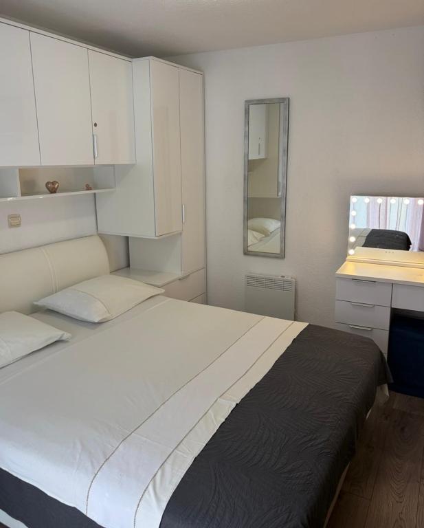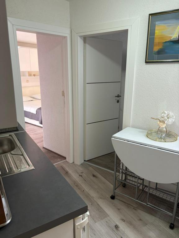 Appartement Nino is een modern appartement, voorzien van alles wat u nodig heeft voor uw vakantie. Het appartement is voorzien van airconditioning en een uitgeruste keuken. Twee slaapkamers zijn voorzien van televisie en hebben een eigen badkamer. Het appartement beschikt over een balkon en een terras met een prachtig uitzicht op de zee en de berg Biokovo. Naast een kleine eethoek in het appartement, is er op het terras een zithoek en ligstoelen. Ons appartement Nino ligt op 5 minuten lopen van het centrum en het hoofdstrand. In de buurt is er ook een speeltuin met kunstgras voor sportactiviteiten: voetbal, basketbal, ...