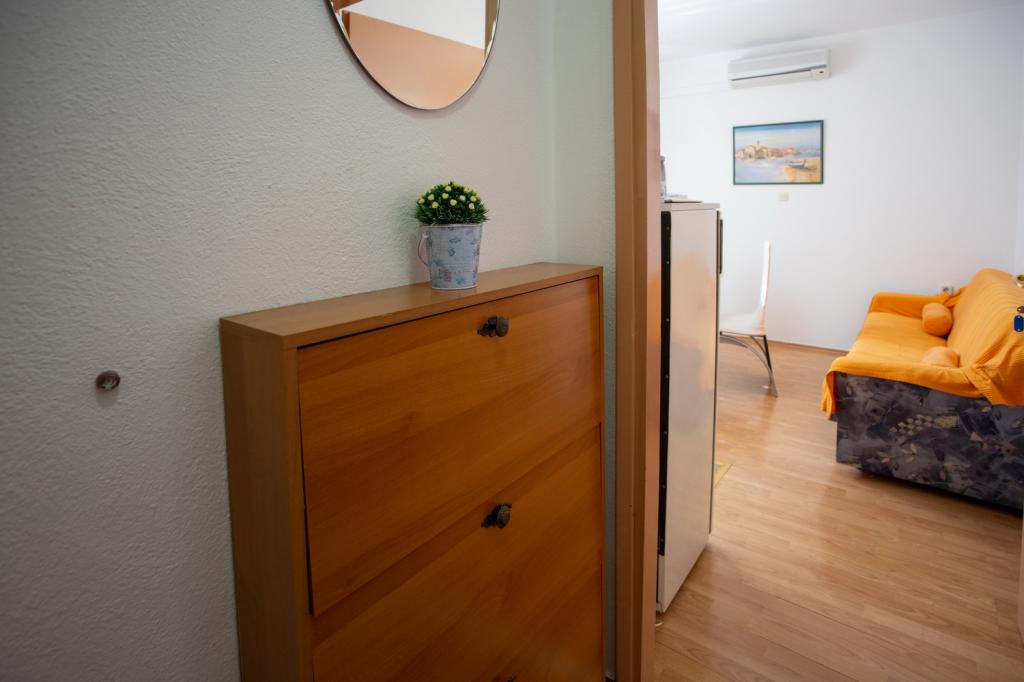 Het appartement is gelegen in Baska Voda in Split-Dalmatië County. Afstand van het centrum en het strand 200m, omringd door de zuidkant van de lange zandstranden en de noordelijke berghelling. Het appartement heeft een keuken, een slaapkamer met badkamer en een balkon. Inclusief WiFi, tv, airconditioning en beschikt over een parkeerplaats.