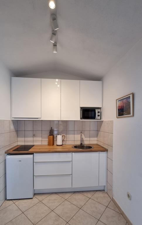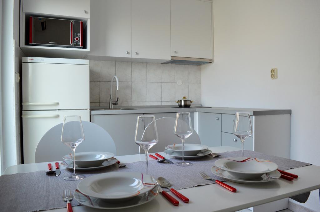 Wij verbleven 10 dagen in de accommodatie. Ik kan wel zeggen dat de gastvrouw een fantastische dame is! Aardig, aardig! Ze verwelkomde ons met zelfgemaakte brandewijn. Ze gaf haar dochter bijna elke dag een koekje, een reep chocolade en een stuk fruit. De accommodatie is netjes en schoon! De keuken is misschien wel beter uitgerust dan die van mij thuis. Het appartement beschikt over een föhn, strijkplank, strijkijzer en een wastafel. Onze auto stond geparkeerd op de binnenplaats van de villa, in de schaduw. De zee is slechts 200 meter verderop, net als de winkel. Konzum of Tommy zijn even ver weg als je naar de zee wilt winkelen. Alle aanbevelingen. Ik hoop dat we ooit nog eens naar Baške Vode komen, en als dat gebeurt, dan zeker weer naar Tante Neva.