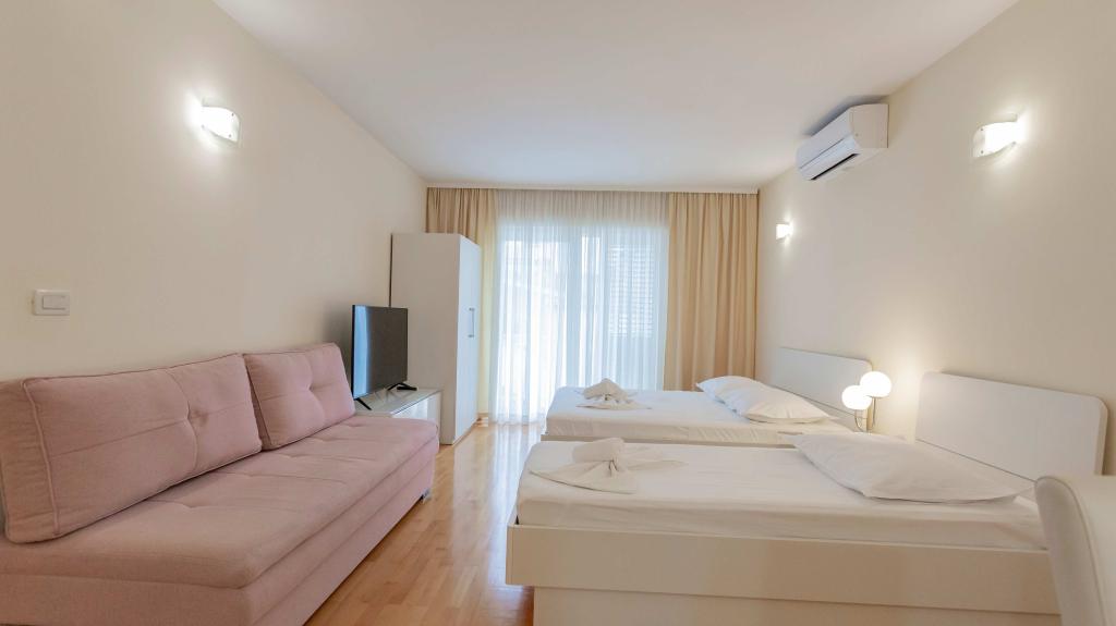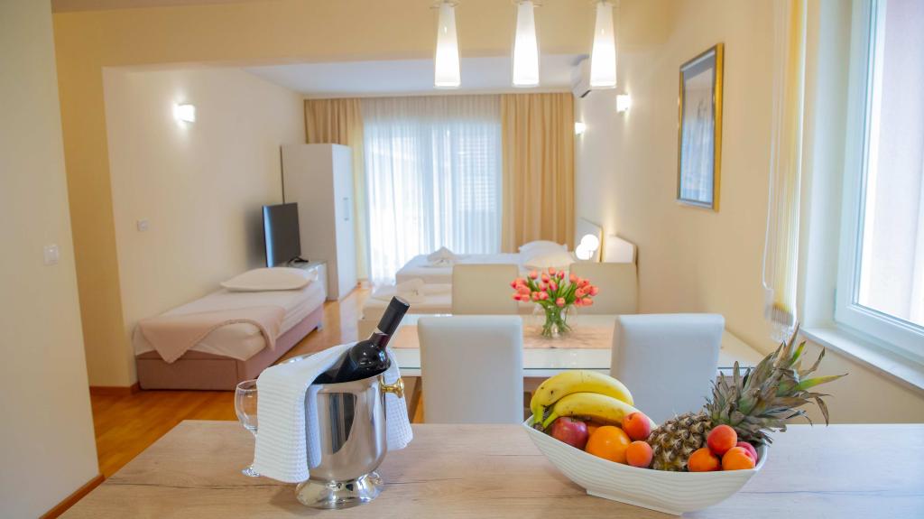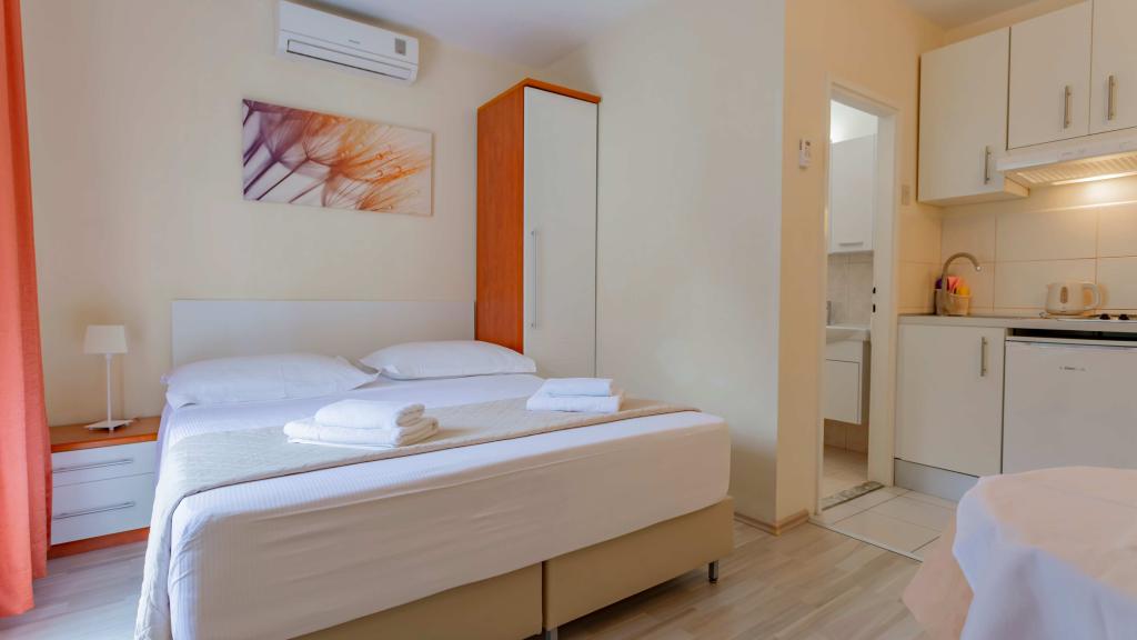 Onze volledig uitgeruste appartementen liggen aan een rustige straat in het hart van Baška Voda, op slechts 2 minuten lopen van het strand, winkels, restaurants en het stadscentrum. Elk appartement beschikt over airconditioning, gratis WiFi en een privéparkeerplaats voor het gebouw. Ze vormen een ideale keuze voor gasten die willen genieten van de nabijheid van de zee, maar die tijdens hun vakantie ook rust en comfort willen.
