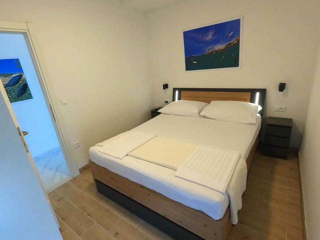 Pas gerenoveerd en volledig uitgerust appartement in een rustige omgeving tussen Baska Voda en Brela, gelegen eerste rij aan zee, boven een prachtig strand. De voorziening is gelegen op 10 minuten lopen (ca. 500 m) van het centrum van beide plaatsen. Groot terras met luifel en uitzicht op zee, 2 tweepersoonsslaapkamers, twee badkamers en keuken met toegang tot het terras. Alles nieuw. Het appartement is gelegen op een aparte verdieping met een aparte ingang, een grote tuin gescheiden van alle buren. Prive parkeerplaats in de schaduw net boven het huis.