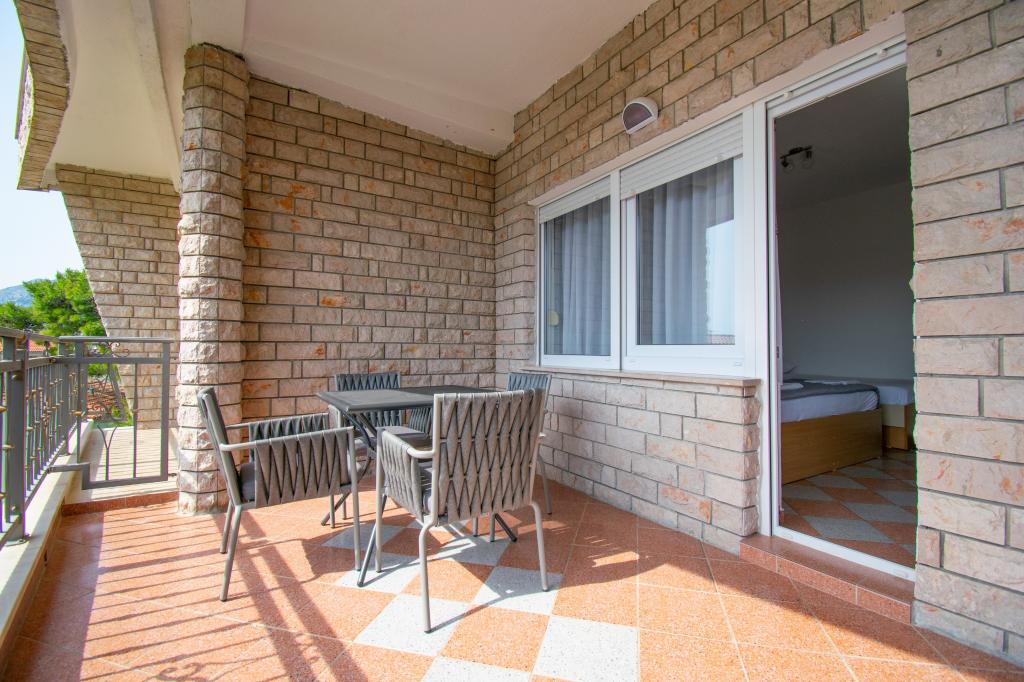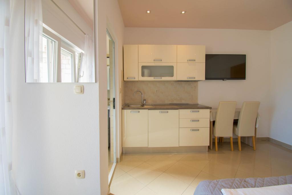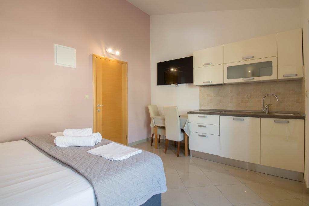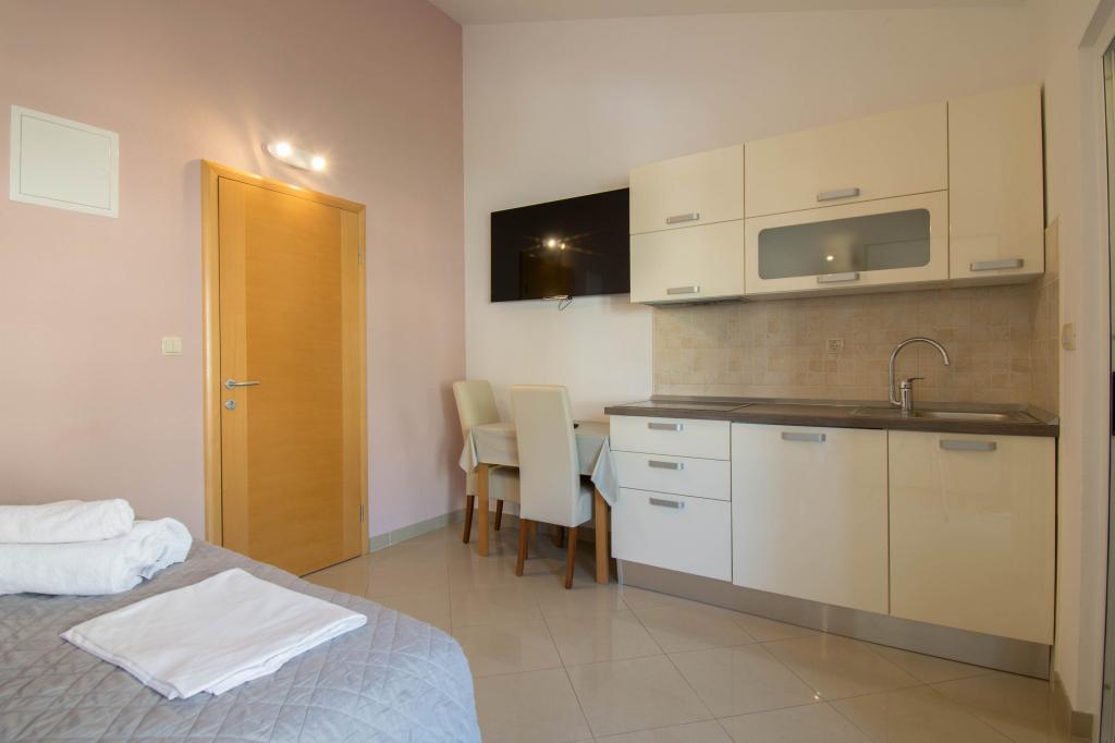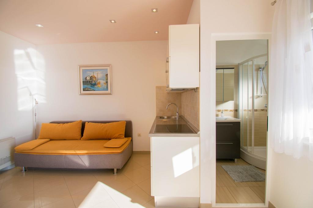 We verbleven in een studio-appartement 2+2. Het appartement is hetzelfde als op de foto's, zeer schoon en netjes, alle lof voor het appartement en het onderhoud ervan. De eigenares is zeer vriendelijk, niet opdringerig en zal je altijd helpen als je het nodig hebt... Het balkon in het appartement heeft een prachtig uitzicht, het uitzicht is betoverend. Wij zijn er erg blij mee en de kinderen hebben het erg naar hun zin gehad. Ik raad het iedereen van harte aan, je zult er geen spijt van krijgen!
