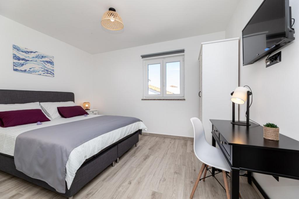 Modern appartement in een rustige omgeving, ongeveer 200 m van de zee. Het is gelegen op de 1e verdieping van een gezinswoning. De faciliteit ligt op 5 tot 10 minuten lopen van het strand of het stadscentrum en heeft 2 parkeerplaatsen. Het appartement bestaat uit 3 slaapkamers, waarvan 2 met een balkon. Elke kamer is voorzien van airconditioning, satelliet-tv en een haardroger. Keuken uitgerust met koelkast, vriezer, vaatwasser, kookplaat, magnetron, koffiezetapparaat, waterkoker, broodrooster en alle benodigde keukengerei. De woonkamer is ook voorzien van airconditioning en heeft satelliet-tv. Het appartement heeft 2 badkamers met douche. WI-FI bij de prijs inbegrepen. Het appartement heeft ook een tuinterras met zitje en barbecue. Wij wensen u een prettig verblijf in ons appartement.