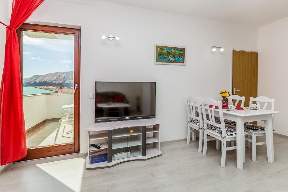 Beste onze gasten, appartement DINO, onlangs gerenoveerd appartement met balkon, 350 meter van de zee, is gelegen in een rustige straat. Het is een paar minuten lopen van het mooiste strand van het eiland Krk, van de promenade aan zee, van fietspaden en ongerepte natuur. Winkels en restaurants liggen op 250 meter van de appartementen. 2 slaapkamers (1e kamer tweepersoonsbed, 2e kamer eenpersoonsbed). Voor een actieve vakantie kunt u de omliggende heuvels beklimmen naar het "Maanplateau", langs het gemarkeerde pad en genieten van het prachtige uitzicht over de hele Baška-baai en de omliggende eilanden. Baška is een ideale plek voor mensen die willen genieten van de natuurlijke schoonheid en de sterrenhemel. Kajak en SUP-board voor onze gasten die willen genieten van de zee en naar kleine afgelegen stranden in de buurt van Baska willen gaan. Een plek waar je kunt genieten van de rust en de natuur met het getjilp van vogels en de geur van mediterrane planten. Als je een liefhebber bent van ongerepte natuur of even wilt ontsnappen aan de drukte van de stad en er even tussenuit wilt, dan zijn wij er voor jou. WELKOM !!!