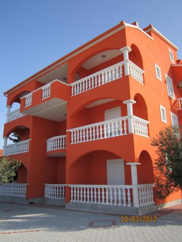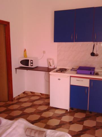 De appartementen bevinden zich op drie niveaus, die onafhankelijk van elkaar met 4-6-8 bedden. Op de tweede verdieping bevinden zich appartementen voor grote gezinnen of samenleving met een goed uitgeruste badkamer, keuken en eetkamer. Deze aparmani zijn voorzien van airconditioning. In elk appartement kan een extra bed gezet, tegen dezelfde prijs. Elk appartement heeft een volledig ingerichte keuken (koelkast, fornuis), badkamer (douche, wastafel, toalat, spiegel), kamers (kasten, dubbel bed), terras met uitzicht op zee (tafel, stoelen).
