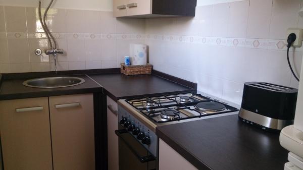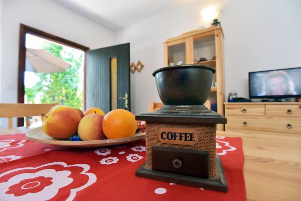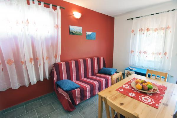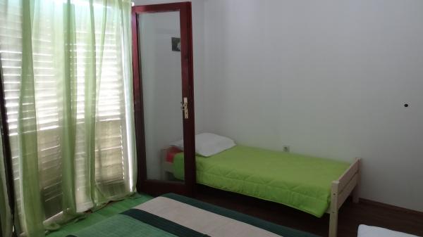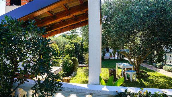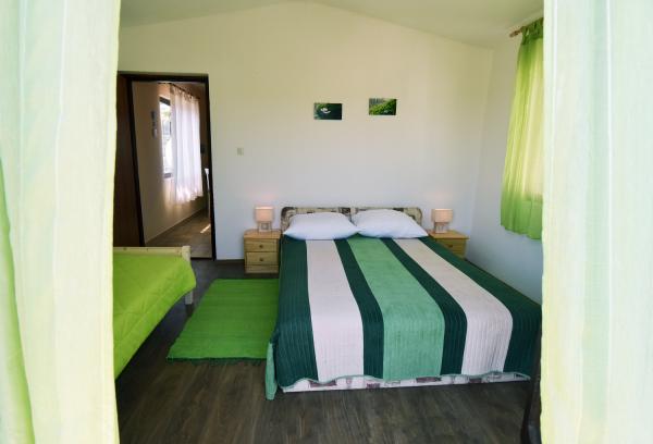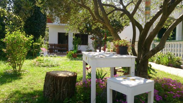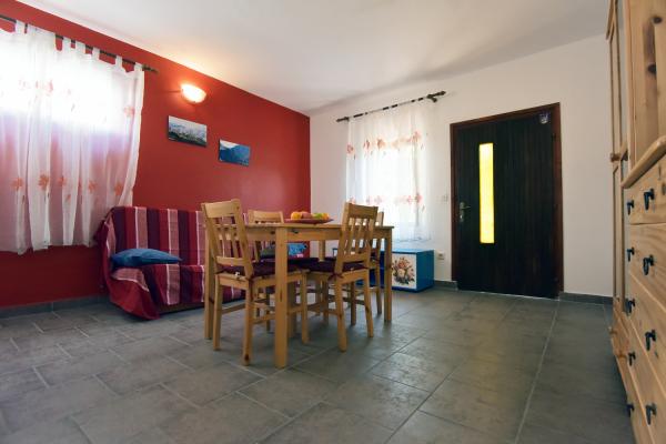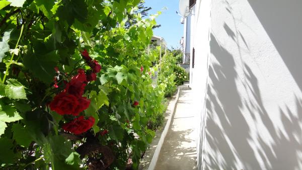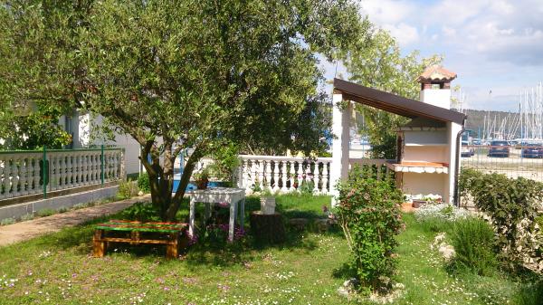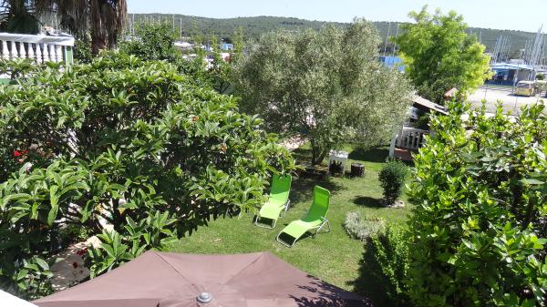 Klein, comfortabel huis met een rustige mediterrane tuin en uitzicht op de jachthaven Dalmatië. De begane grond eetkamer en een kleine keuken, een kamer met badkamer en toilet. Aan de zuidkant van de kleine tuin met palmbomen, een trap leidt naar de eerste verdieping met twee slaapkamers (1 airconditioning) met een bed, een bureau, kasten, badkamer en toilet. Balkon open naar de tuin. Op het ruime terras buiten de ingang van het huis is een tuinset van kwaliteit hout en een grote paraplu. Aangelegde gazon met een kleine olijfboom en nešpulom. Lage mediterrane planten rondom het gebied met ligstoelen, buitendouche en een aparte grill vakje. Aan de voorzijde is een eigen parkeerplaats voor 3 auto's. Het huis is volledig beschikbaar voor gasten. 5 min lopen naar het prachtige zandstrand (beach bar, club duiken, zee scooter verhuur, een geweldige ijs, volleybalvelden, strandstoelen, douches, parkeren)