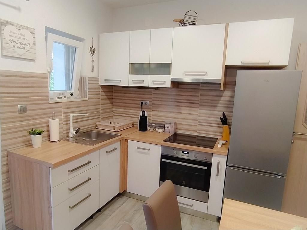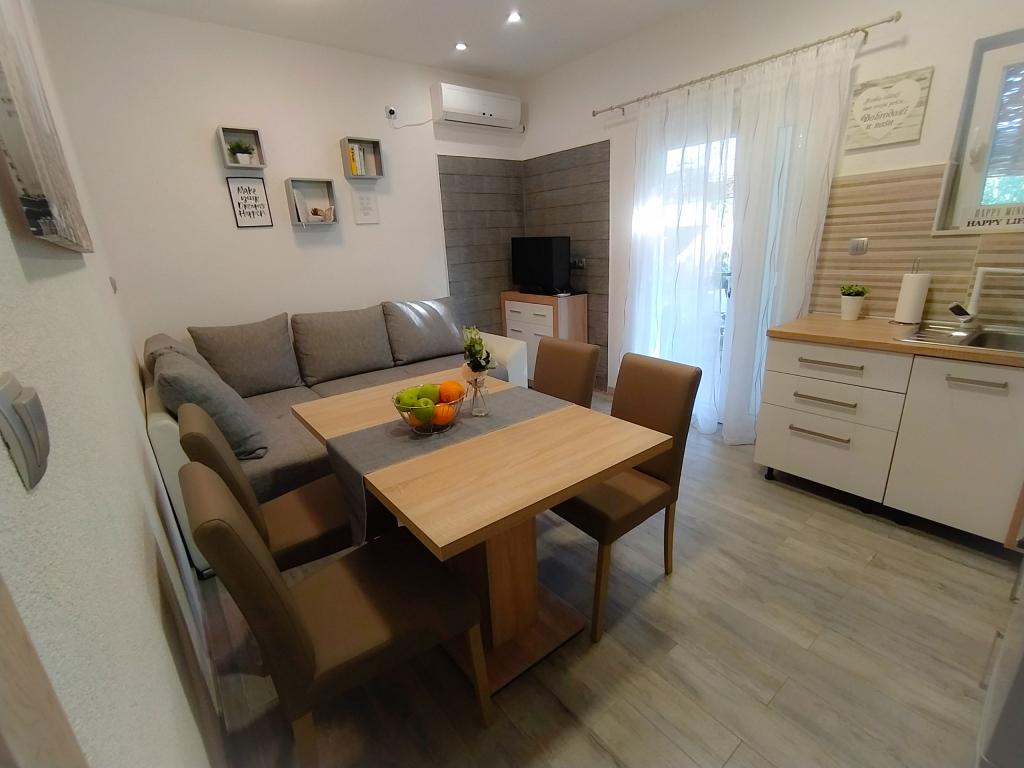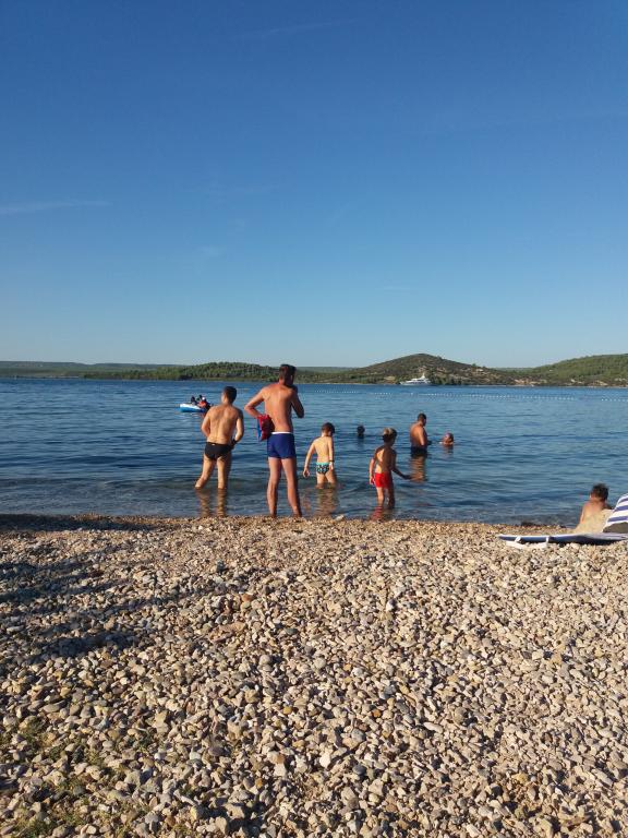 Appartement Baza is gelegen in een rustig dorpje Bilice, tussen Šibenik en het Krka National Park. De appartementgrootte is 35 m2 en het terras van 18 m2. Het bestaat uit slaapkamers met twee bedden die kunnen worden samengevoegd en gescheiden, een volledig uitgeruste keuken (oven, vriezer, wasmachine) en een woonkamer met twee bedden. De badkamer is ruim en u kunt gratis gebruik maken van de wasmachine. Het appartement beschikt over airconditioning, Wi-Fi, TV (satelliet, Smart TV). Als u met kinderen komt, kunnen wij u een reiswieg en een voederbak aanbieden. Prive parkeerplaats, een grote tuin en barbecue zijn beschikbaar. De tuin is omheind en groot genoeg om mee te spelen als je met kleinere kinderen komt. De afstand tot het strand en café met kinderspeelplaats is 250 m, 5 minuten lopen. Dichtbij de snelweg.
