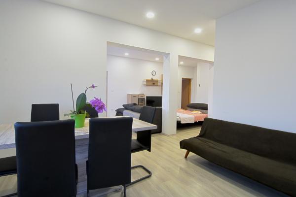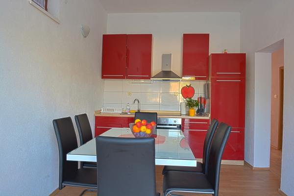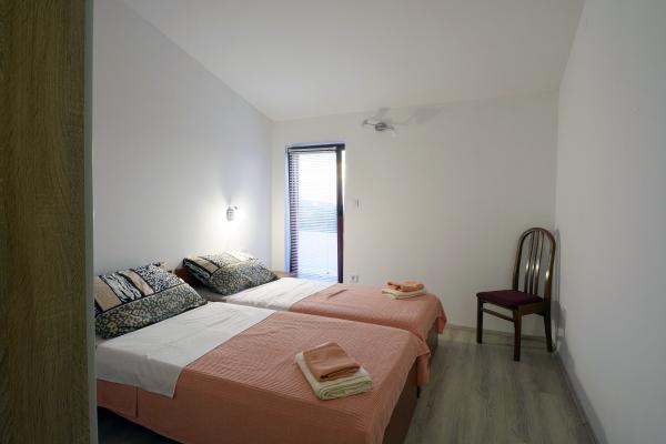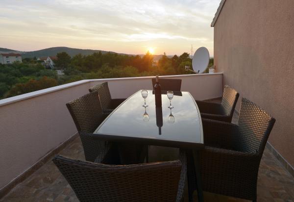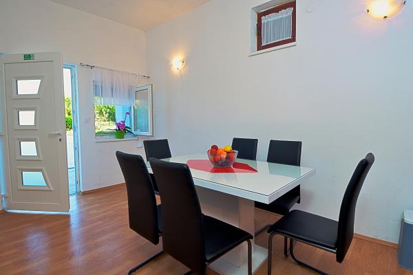 Appartement Dalmatische - Bilice, nieuw ingericht en volledig uitgerust, 40 m2 op de begane grond en 70 m2 op de eerste verdieping, met grote tuin en zwembad. De appartementen zijn gelegen op een rustige plek Slavica - Bilice in de buurt van Šibenik, in de buurt van het meer Prokljan. Ideaal voor mensen met kinderen en mensen die rust, stilte en ontspanning zoeken, en ook dicht bij de twee nationale parken Krka en Kornati. Het huis ligt op 5 minuten rijden van het strand, 10 minuten van het centrum van Sibenik.
