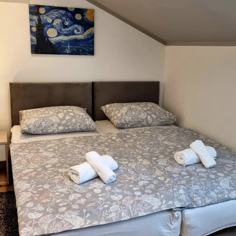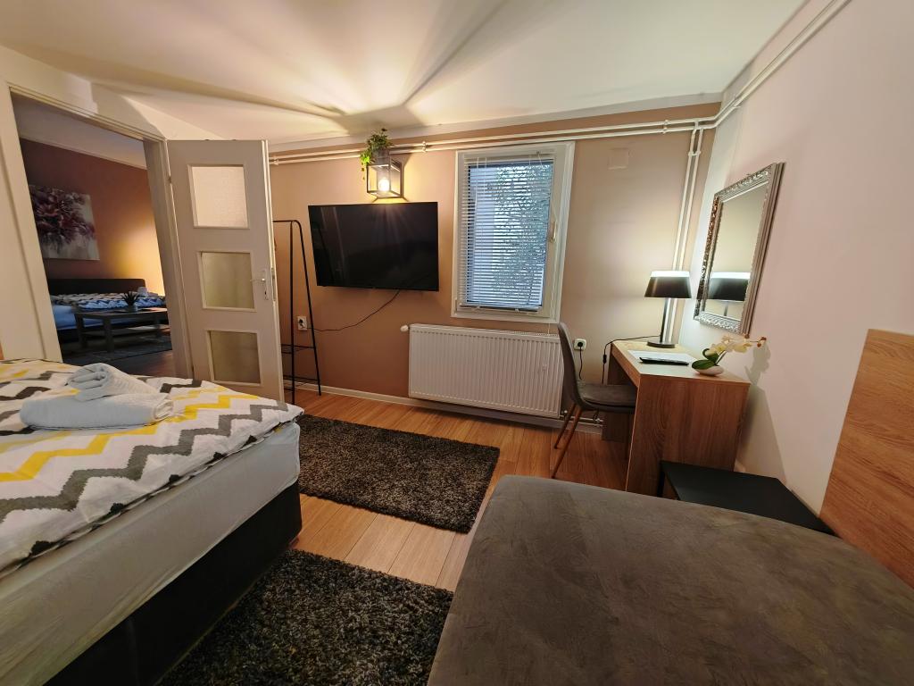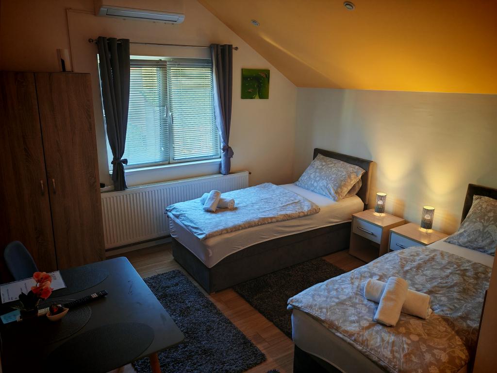 Privé accommodatie Corina, moderne en comfortabel ingerichte kamers en appartement in het rustige stadje Bilje, een buitenwijk van Osijek, 3 km van het natuurpark Kopački rit, en 5 km van de stad Osijek (Tvrđe). kunt genieten van de voordelen van de natuur en wakker worden met de geur van verse bloemen en fluitende vogels. Kamer (dubbel 23 m2) Kamereigenschappen: - uitzicht op de tuin - SMART TV 126 cm (internet televisie, Netflix) - airconditioning - strijkijzer - eettafel met twee stoelen - centrale verwarming - klamboe - kledingkast - badkamer met douche en toilet - haardroger - gratis toiletartikelen - beddengoed - gratis draadloos internet. Driepersoonskamer (25 m2) Kamereigenschappen: - uitzicht op de tuin - SMART TV 110 cm (internet televisie, Netflix) - airconditioning - strijkijzer - eettafel met twee stoelen - centrale verwarming - klamboe - badkamer met douche en toilet Appartement 46 M2 tuin uitzicht - SMART TV 120 cm (internet televisie-woonkamer) Smart TV 126 cm slaapkamer wasmachine