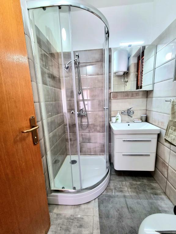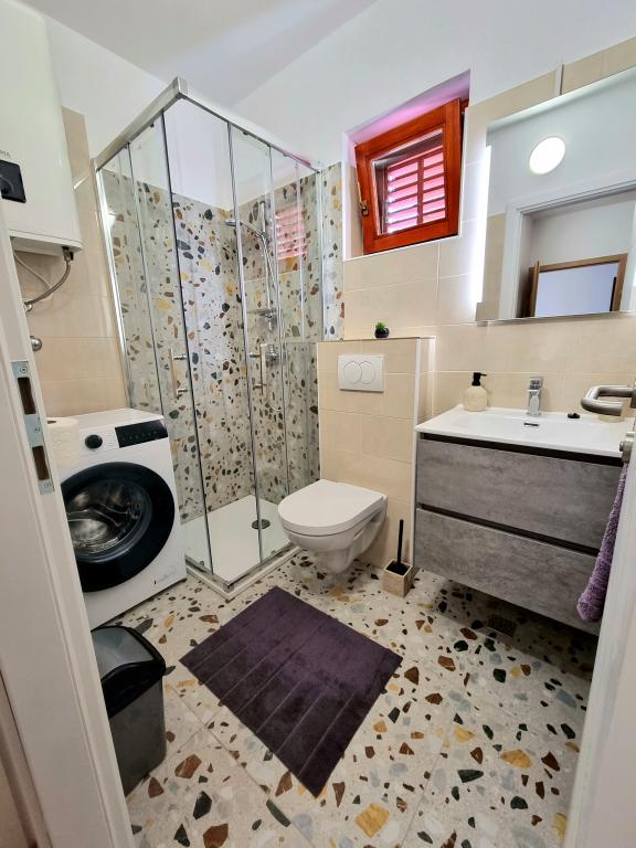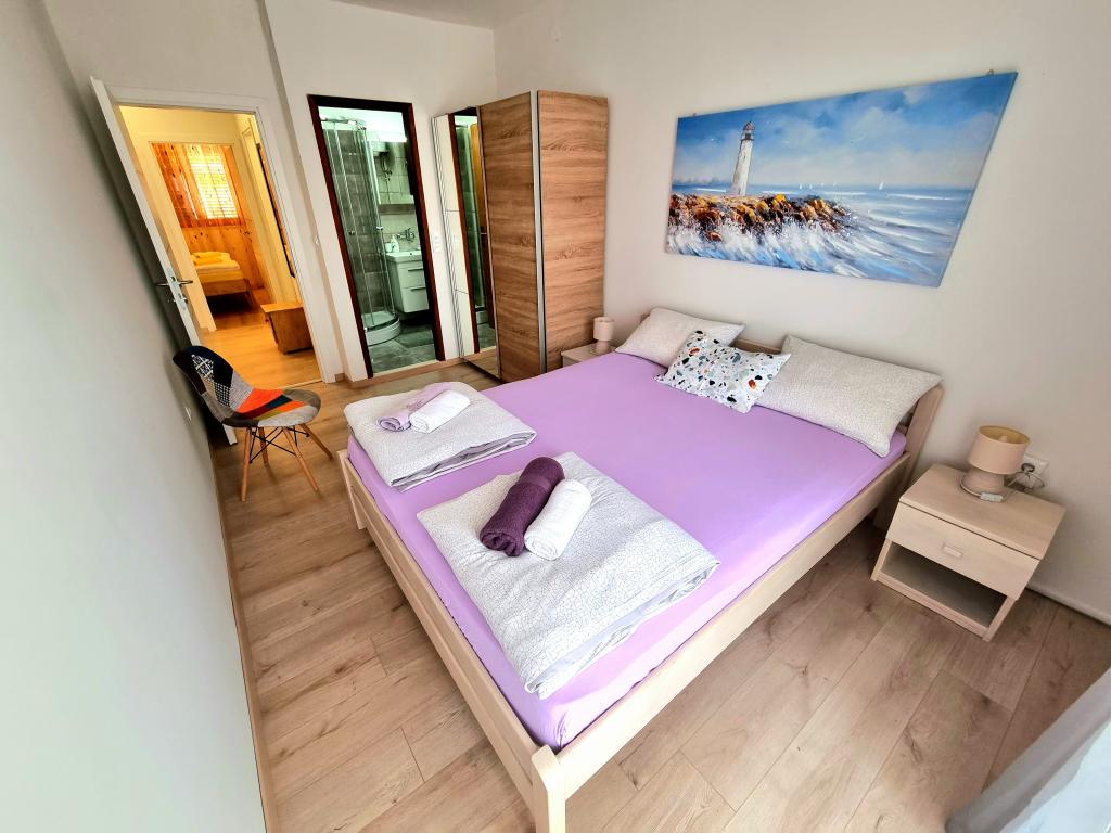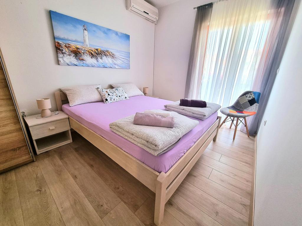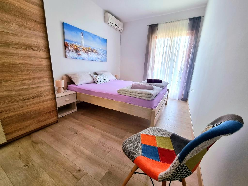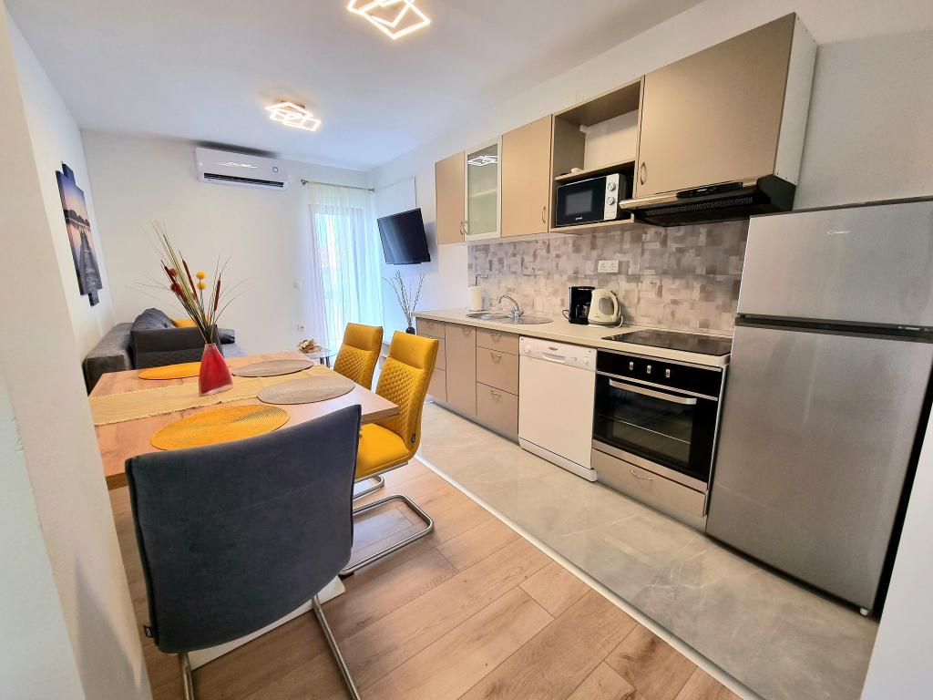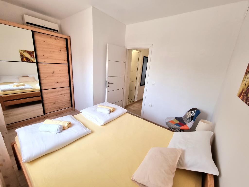 Volledig uitgerust en modern appartement met twee slaapkamers voor 4 personen in Biograd na Moru. De accommodatie ligt in een rustig deel van het centrum, op slechts een paar minuten lopen van het strand van Dražice. De boulevard en waterkant met restaurants en cafés zijn eveneens vlakbij. Parkeergelegenheid voor één auto op eigen terrein. Het appartement bestaat uit twee aparte kamers, elk met eigen airconditioning, twee badkamers en een volledig uitgeruste keuken.