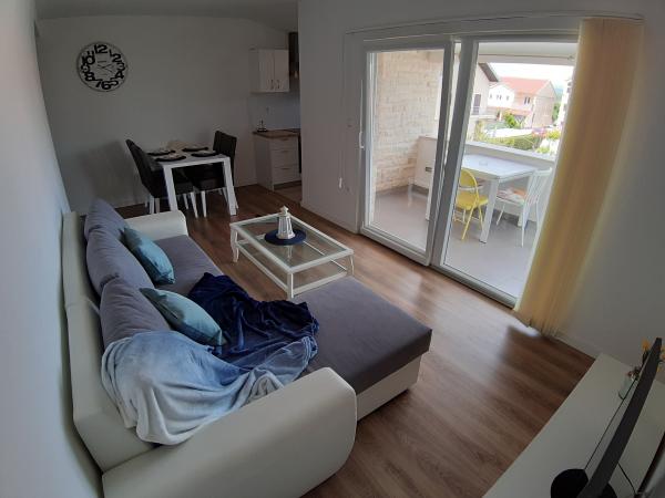 Volledig uitgeruste en moderne appartementen in een rustige buurt van Biograd op Moru.Objekt heeft een ruime tuin, een overdekte parkeerplaats en een garage, ideaal voor gezinnen met kinderen, maar ook voor mensen die van rust, helder water en prachtige stranden te zoeken.