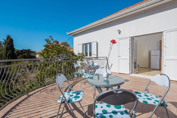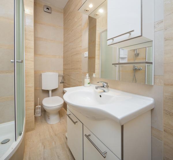 Nieuw gerenoveerde villa (2017). Villa bestaat uit 5 appartementen. Het appartement heeft twee slaapkamers, een woonkamer met een bank voor 2 personen. Elke kamer heeft een eigen badkamer. Gratis toegang tot internet, airconditioning, parking, beddengoed en handdoeken. Het appartement heeft een groot terras omgeven door groen, net achter de green zijn er prachtige stranden, op slechts 100 meter van het appartement. Het appartement heeft een mooie grote tuin, vol met groen, net achter de green zijn er prachtige stranden. De locatie is rustig en gezellig luxe. Restaurants, winkels, het strand direct in de omgeving. 80m afstand van het appartement, is er een promenade, die verschillende faciliteiten heeft en leidt rechtstreeks naar het centrum van de stad. Beach heeft een blauwe vlag, het markeren van de beste stranden ter wereld.