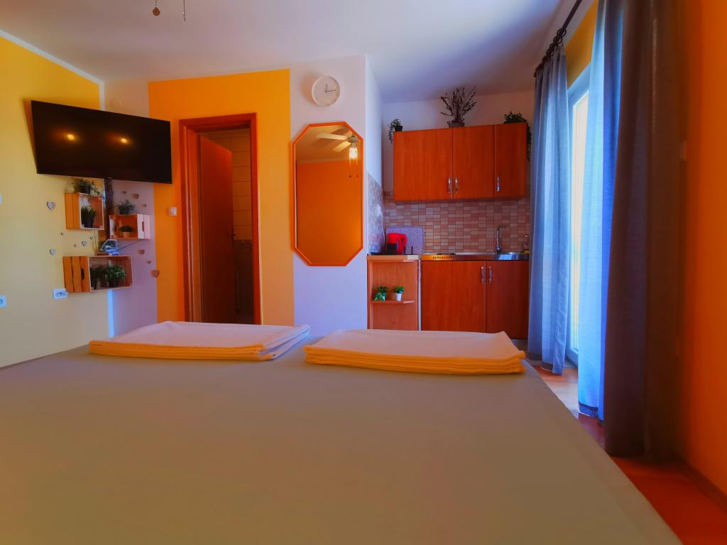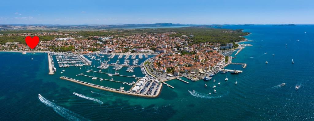 Strandappartementen Roza gelegen op de eerste rij van het Bošana-strand in een tuin vol groen, dichtbij alle voorzieningen. Winkels, restaurants en bars bevinden zich in de directe omgeving, het stadscentrum ligt op minder dan 10 minuten lopen. Beveiligd parkeren op het erf voor voertuigen van standaardformaat.