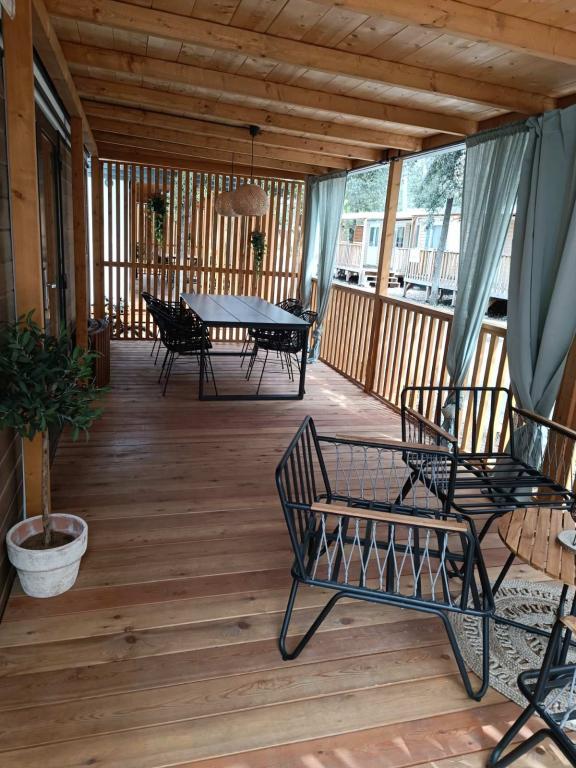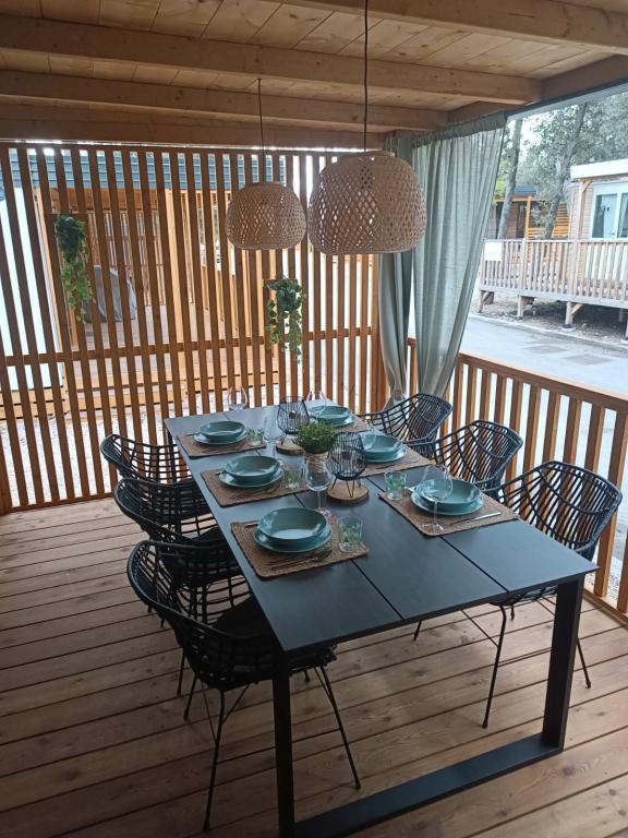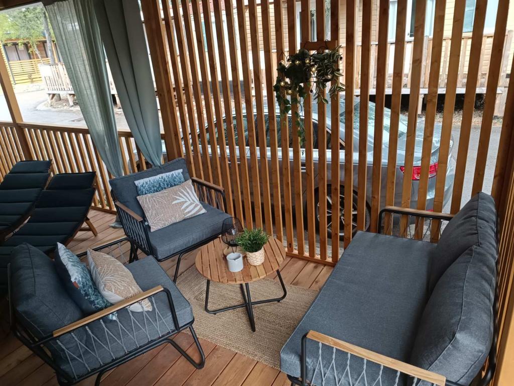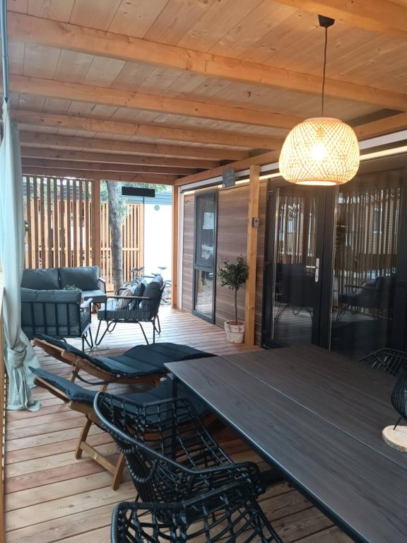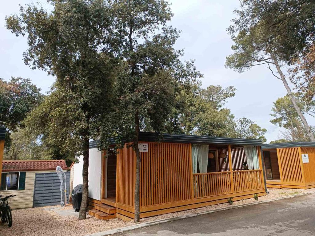 De moderne stacaravan InnMare 1, gelegen in een rustig deel van camping Soline, in een dennenbos, is de perfecte plek voor een familievakantie. Met een oppervlakte van 32 m² bestaat de stacaravan uit een slaapkamer met een tweepersoonsbed, een slaapkamer met twee eenpersoonsbedden, een woonkamer met een slaapbank (1-2 personen), twee aparte badkamers met toilet, een terras van 32 m², een kleine tuin en een parkeerplaats. De stacaravan is volledig gemeubileerd en beschikt, naast de standaarduitrusting, ook over een magnetron, een waterkoker en een espressomachine. Het terras is uitgerust met een extra eettafel en ligstoelen voor een heerlijk dutje, gekruid met de geur van dennenbomen. Naast de stacaravan staat een barbecue, die ook deel uitmaakt van de uitrusting die gasten kunnen gebruiken. Naast de stacaravan is er ook een parkeerplaats voor één auto. Welkom bij InnMare 1, een moderne stacaravan, bedoeld voor een rustige en idyllische familievakantie in een rustig dennenbos, op korte afstand van de zee, de stranden en Biograd na Moru!