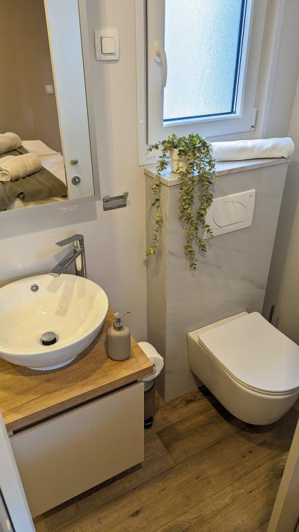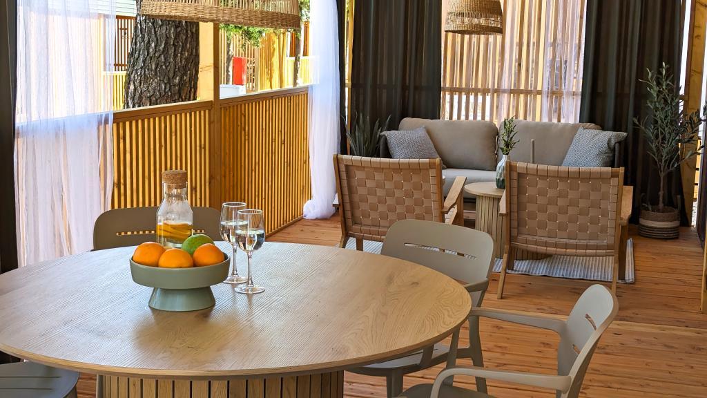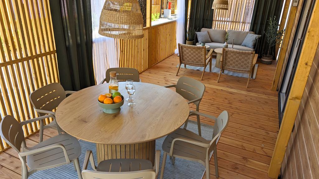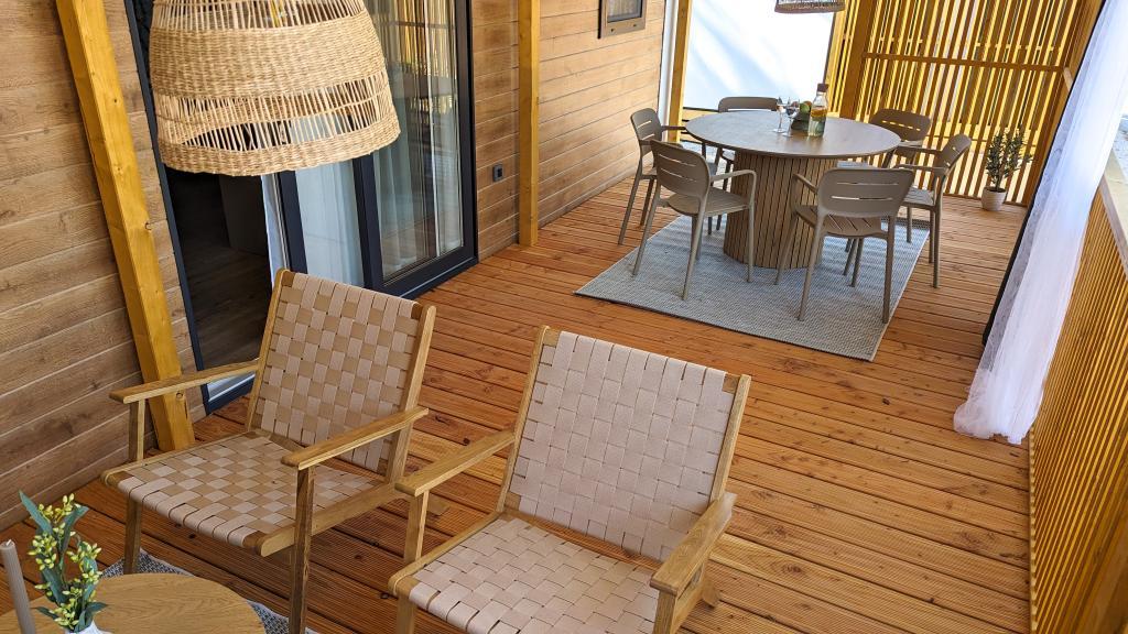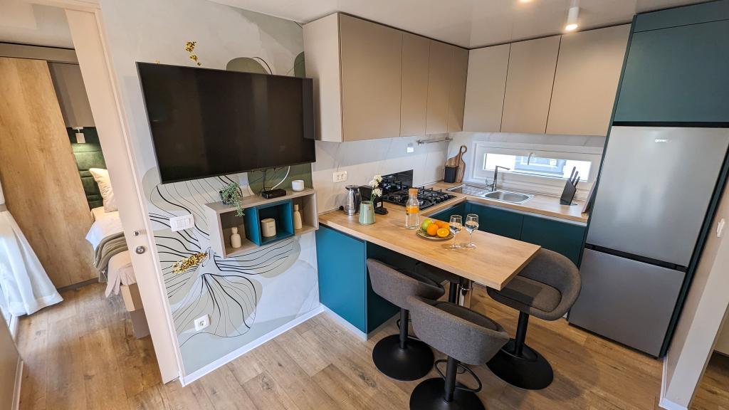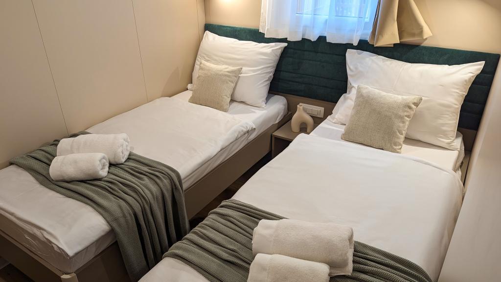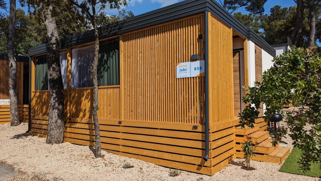 Geniet van natuur en comfort: Jaki stacaravans op camping Soline in Biograd na Moru. Onze modern ingerichte stacaravans liggen in een rustig deel van de 4-sterrencamping, omgeven door dennenbossen, en zijn ideaal voor maximaal 6 personen. Geniet van de nabijheid van het strand (2-5 minuten lopen), winkels en restaurants, en de boulevard die naar het centrum leidt (15 minuten). Deze stacaravans beschikken over 2 slaapkamers en 2 badkamers, een woonkamer, een groot terras met eettafel en zithoek, en een volledig uitgeruste keuken - vaatwasser, magnetron, koffiezetapparaat, broodrooster, blender, buitengrill. De stacaravan beschikt ook over gratis wifi, gratis parkeergelegenheid direct naast het huis, smart-tv, airconditioning, handdoeken en beddengoed. De camping biedt vele faciliteiten voor het hele gezin: prachtige zand- en kiezelstranden die helemaal tot aan het centrum reiken, een restaurant met mediterrane specialiteiten, een kinderspeelplaats, sportactiviteiten en fietsverhuur. Dalmaland, het grootste themawaterpark van Kroatië, ligt op 15 minuten rijden.