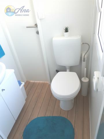 Mobile Home Ana is een nieuwe, complete en modern uitgeruste stacaravan. Het huisje heeft een slaapkamer met een tweepersoonsbed, een slaapkamer met aparte bedden en twee badkamers met ruime douchekoppen met handdoeken. De keuken is volledig uitgerust met airconditioning, magnetron, waterkoker, koffiezetapparaat, broodrooster, strijkijzer, koelkast met vriesvak en accessoires die nodig zijn voor een comfortabel verblijf. In de woonkamer is er een driezitter en een tafel met twee stoelen. Op het ruime terras is er een driezitter, een fauteuil en een dagtafel, en een deel met ontspanningslounges en een gedeelte met een tafel en zes buitenstoelen of gewoon drinkkranen en een grote buitenventilator die geschikt is voor een comfortabel verblijf. Het terras is ook uitgerust met luchtige gordijnen die voor frisse lucht zorgen. Op het terras is er ook een elektrische barbecue en een bakplaat. Parkeerplaats naast het huisje, afstand tot de zee 5 minuten gemakkelijke wandelingen. In het kamp is er een prachtige kinderspeelplaats, winkel, internet / Wi-fi, smart tv en satelliet-programma