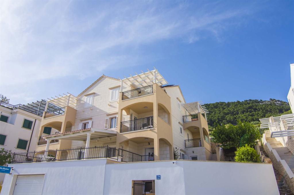 Villa Marina ligt in een rustiger deel van Bol op het eiland Brač, op een paar minuten lopen van het stadscentrum en de zee. De accommodatie biedt meerdere appartementen, die allemaal netjes, functioneel en van alle gemakken voorzien zijn voor een aangenaam verblijf in de zomer. Elk appartement heeft een eigen keuken, badkamer, airconditioning en een balkon of terras. De meeste appartementen bieden uitzicht op zee of de stad. Gasten hebben toegang tot een eigen parkeerplaats op het terrein. Het centrum van Bol, restaurants, winkels en de boulevard zijn gemakkelijk te voet bereikbaar en het beroemde strand Zlatni rat ligt op ongeveer 15-20 minuten lopen of een paar minuten rijden. De accommodatie is geschikt voor stellen, gezinnen en kleine groepen die op zoek zijn naar een eenvoudige en comfortabele accommodatie dicht bij alle voorzieningen, maar zonder lawaai.