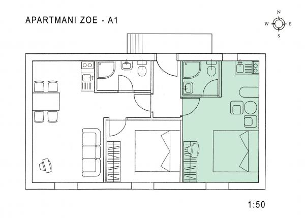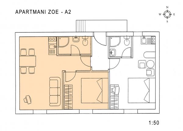 Appartement voor twee personen + twee extra bedden (36 m2)
