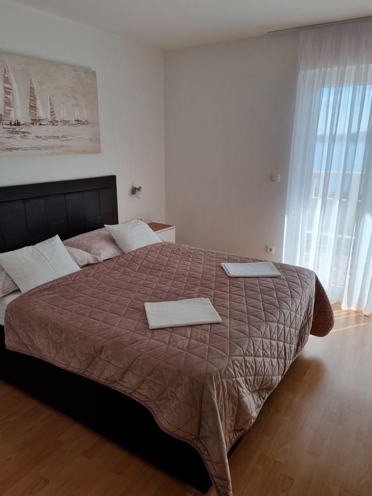 Het gebouw is gelegen in een zeer rustige (doodlopende) straat waar geen verkeer is (alleen auto's van de gasten en gebouweigenaren) en biedt een prachtig uitzicht op het dennenbos, de zee en het nabijgelegen eiland Brač. De afstand tot het strand en het centrum van de stad is ongeveer 300 meter. Onze parkeerplaats is beveiligd voor het gebouw.