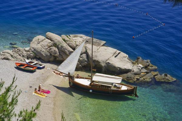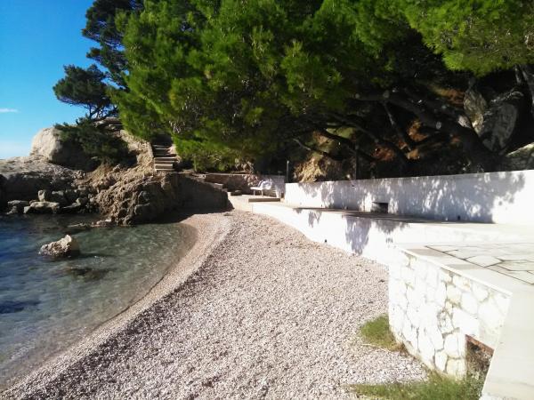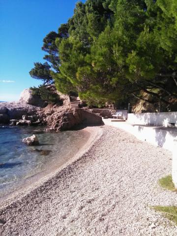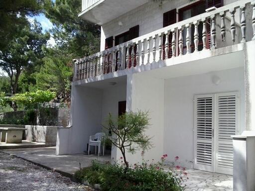 Studio appartement is gelegen in een rustige baai Jakirusa afstand van het strand op minder dan een minuut lopen, 10 meter boven de zeespiegel, omgeven door een dikke dennenbos in de ongerepte natuur met een prachtig uitzicht op de eilanden Brac en Hvar. Op het nabijgelegen strand kunt u uw ideale plek om te ontspannen, genieten van het geluid van de golven en de prachtige Middellandse Zee klimaat. Studio appartement bevindt zich op de begane grond op ongeveer 30 m2 van het interieur en exterieur eigen terras. Het terras dat behoort tot het maritieme gebied met uitzicht op de zee, stranden en eilanden. De studio bestaat uit een kamer met een bed en een stapelbed, een badkamer en een kitchenette met fornuis en koelkast en vriezer. Handdoeken, toiletpapier, theedoeken, afwasmiddel en linnengoed zijn inbegrepen. Parking, toeristenbelasting en het gebruik van Wi-Fi-diensten zijn inbegrepen. Kamer en Kamer 1 zijn op de tweede verdieping geplaatst, twee kamers hebben een aparte badkamer en een balkon met uitzicht op de zee en de eilanden