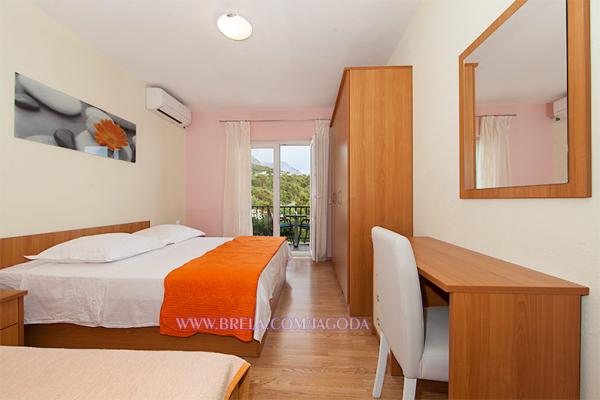 Apartments Jagoda Klaric zijn gelegen in een rustig deel van Brela (Stomarica) een kilometer en een half van het stadscentrum. Aan de ene kant is er het uitzicht op de zee, en de andere heeft een uitzicht op de berghelling. De dichtstbijzijnde supermarkt ligt op ongeveer 300 m en de afstand van het strand, dat is ongeveer 2 minuten loopafstand (80 m). Accommodatie bestaat uit: Appartement 1: 60m² 20m² bakon / terras, 1 triple kamer met balkon (begane grond), 1 triple kamer met balkon (1e verdieping), 2 badkamers met toilet, volledig ingerichte keuken met eetkamer, een groot terras met uitzicht op de zee. Maximale capaciteit voor 6 personen. Appartement 2 / (Na 2 etage): 65m² 15m² balkon / terras, 1 tweepersoonskamer met balkon, 2 badkamers met toilet, een triple kamer met een balkon, een volledig uitgeruste keuken, eetkamer / woonkamer met een bank en een balkon, alle balkons zijn uitzicht op de zee. Maximale capaciteit voor 6 personen.
