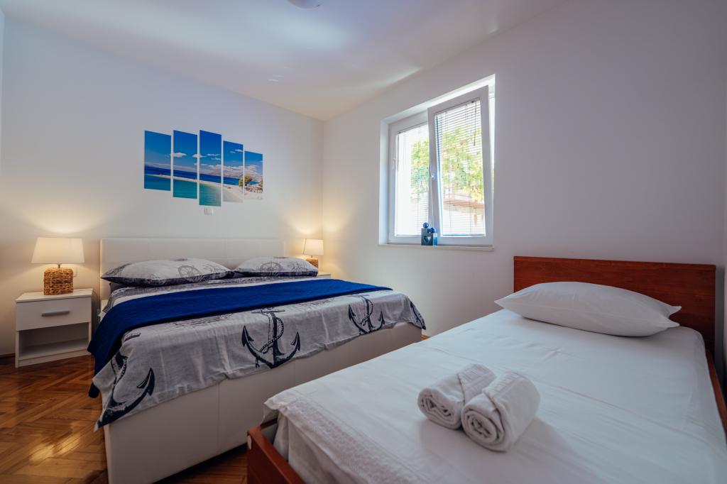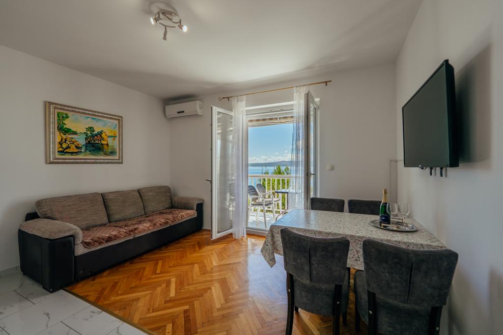 We waren met ons vijven in A5+1. Het appartement is zeer schoon en mooi ingericht. Alles wat je nodig hebt is aanwezig. Het meubilair in de slaapkamer is ook nieuw en het grote bed is zeer comfortabel. Ook is het een voordeel om 2 airco units in het appartement te hebben, zodat het gehele appartement aangenaam gekoeld wordt. Zeer mooi terras met uitzicht op zee en comfortabel meubilair. Na ongeveer 3 minuten lopen is de zee heel dichtbij. Brela ligt op een berg, een prachtige plek, maar je moet wel veel trappen beklimmen. De gastheren zijn erg aardige en behulpzame mensen. Ivana en Milan, bedankt voor alles wat jullie voor ons hebben gedaan.