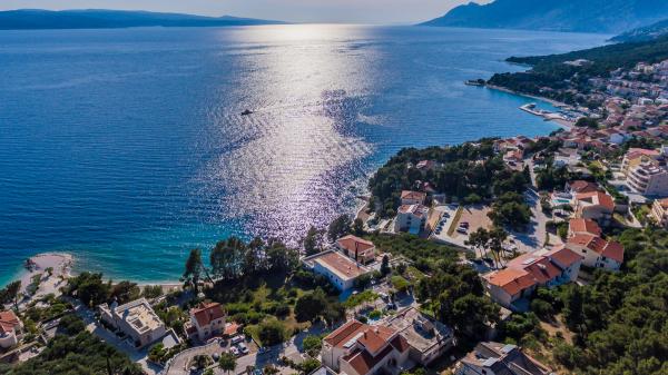 Villa SAN was een droom Ned en Ante die een realiteit in het prachtige Brela en die vandaag de dag delen met hun gasten werd. Op de realisatie ervan opgeleid gastronomen werken al meer dan 30 jaar in zijn familie restaurant in Duitsland. 1998 hun inspanningen uiteindelijk werd gekroond door het kopen van een oude villa in een rustige omgeving dicht bij de zee. Zeven jaar van blijvende werk van renovatie van de villa, gebouwd in 1937, terwijl al helemaal niet aan de wensen van Ned en Ante aan te passen. Vandaag de dag, vrienden en gasten zijn beschikbaar vanaf 15 04th-15e 10e elk jaar drie prachtig en comfortabel ingericht appartement genaamd Luna, Sole en Stella. Elk appartement heeft zijn eigen charme en stijl - zij het op de open haard, mooi terras en een prachtig uitzicht op de zee. De idyllische tuin met palmbomen en diverse planten en bloemen nodigt uit om te rusten. Voor deze oase eigenaars in 2008 van de gemeente kreeg een award beste tuin in Brela, waarop ze zijn bijzonder trots op zijn.