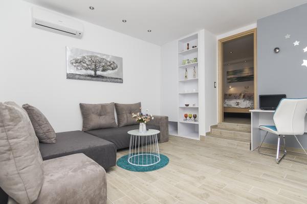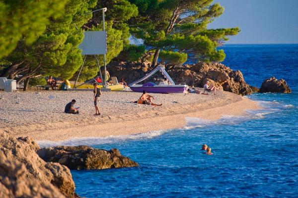 Zina appartementen zijn gelegen in Mirmo deel van Brela, district Podrace - Šćit. Ze bevinden zich ongeveer 20 minuten lopen naar het centrum en naar het strand is 5 minuten lopen.