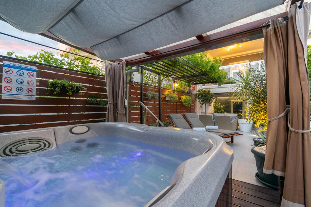 Villa Tomaš Brela ligt in een rustige omgeving, op 2 km van het centrum van Brela. Appartement 1 is geschikt voor 6 + 2 personen en het kleine huisje, oftewel appartement 2, is geschikt voor 2 personen. De appartementen zijn van alle gemakken voorzien, zodat u zorgeloos van uw vakantie kunt genieten. Appartement 1 is een appartement met twee verdiepingen en beschikt over 4 slaapkamers, 2 keukens, 2 badkamers en een terras. Appartement 2 heeft een keuken, slaapkamer, badkamer en balkon. Gasten van Villa Tomaš kunnen gebruikmaken van een zwembad en een jacuzzi. Er is gratis parkeergelegenheid naast de accommodatie. Het strand van Podcrkavlje ligt op 200 meter van het appartement, evenals het eerste restaurant en de strandbar.