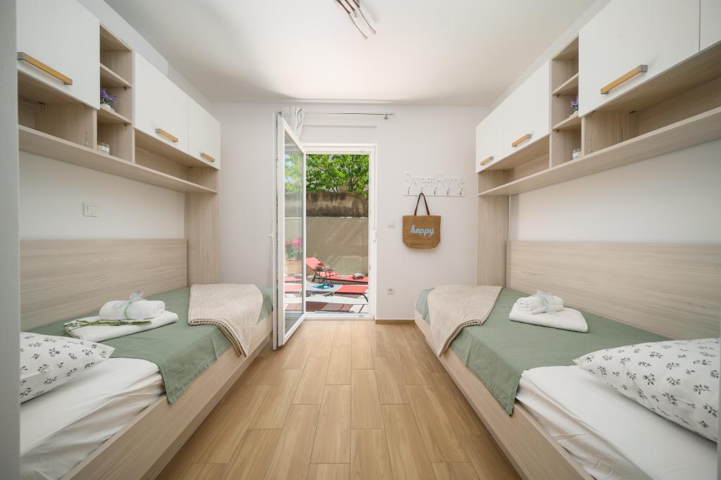Appartement Iris ligt in Brodarica, in een rustige en vredige omgeving. De accommodatie bevindt zich zeer dicht bij de zee en het strand van Rezalište, dat gemakkelijk te voet te bereiken is. In de omgeving vindt u restaurants, markten, bakkerijen en cafés. Appartement Iris is volledig uitgerust en voorzien van airconditioning. Het beschikt over 2 slaapkamers, een woonkamer, een keuken met serviesgoed, een koelkast en een koffiezetmachine, 1 badkamer, 2 terrassen, gratis privéparkeergelegenheid en WiFi.