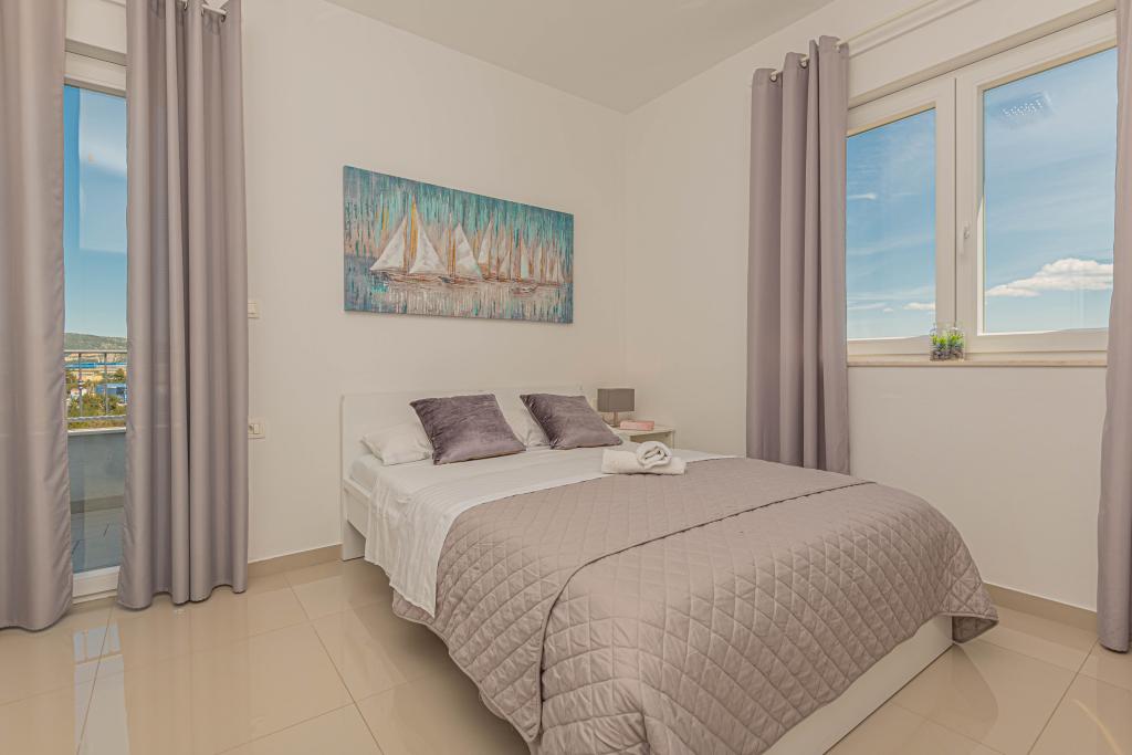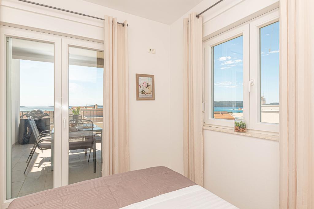 Deze moderne accommodatie is perfect voor een onvergetelijke familievakantie met een prachtig uitzicht op de archipel en een unieke zonsondergang. Gloednieuw appartement met terras en uitzicht op zee omvat 3 slaapkamers, woonkamer, flatscreen-tv, ingerichte keuken en 2 badkamers met douche. Handdoeken en beddengoed zijn bij het appartement inbegrepen. Het ligt op 500 meter van het strand, op 2 km van het waterpark Solaris en op 3 km van Šibenik. Er zijn winkels, pizzeria's en toprestaurants in de buurt. Parkeren is privé en gratis, net als het WIFI-netwerk. De dichtstbijzijnde luchthaven is de luchthaven van Split, op 55 km afstand. Het appartement is volledig voorzien van airconditioning. Een groot terras met tafel en stoelen om te genieten van de avonduren in een zeer rustig deel van Brodarica.