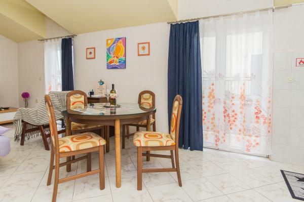 Een goed onderhouden, ruim appartement op slechts een korte wandeling naar het strand, bakkerijen, restaurants, winkels ... Parkeren is gratis op het erf, in de schaduw, bij de ingang afzonderlijk heeft het appartement een eigen balkon, een aparte slaapkamer, een keuken met gerechten, in de woonkamer is er een breed bed voor twee personen, een balkon ... Airconditioning, satelliet-tv en onbeperkte internettoegang zijn gratis. . Beddengoed en handdoeken worden verstrekt in het appartement. Kom en geniet van uw vakantie bij ons .... . . .
