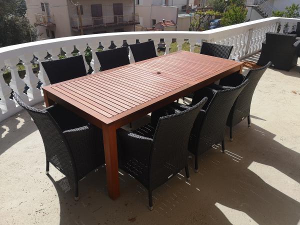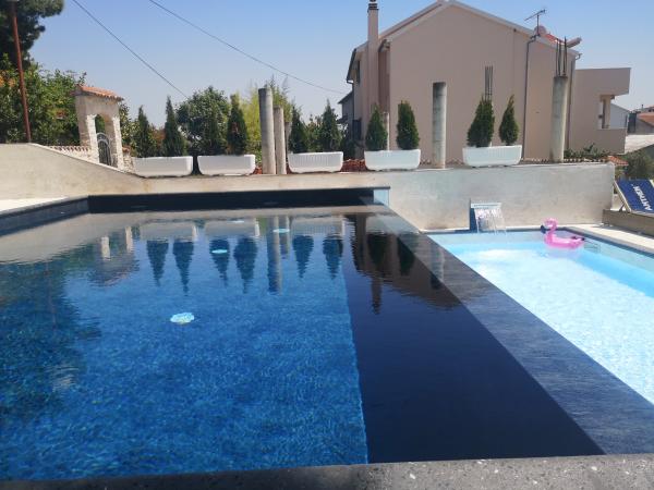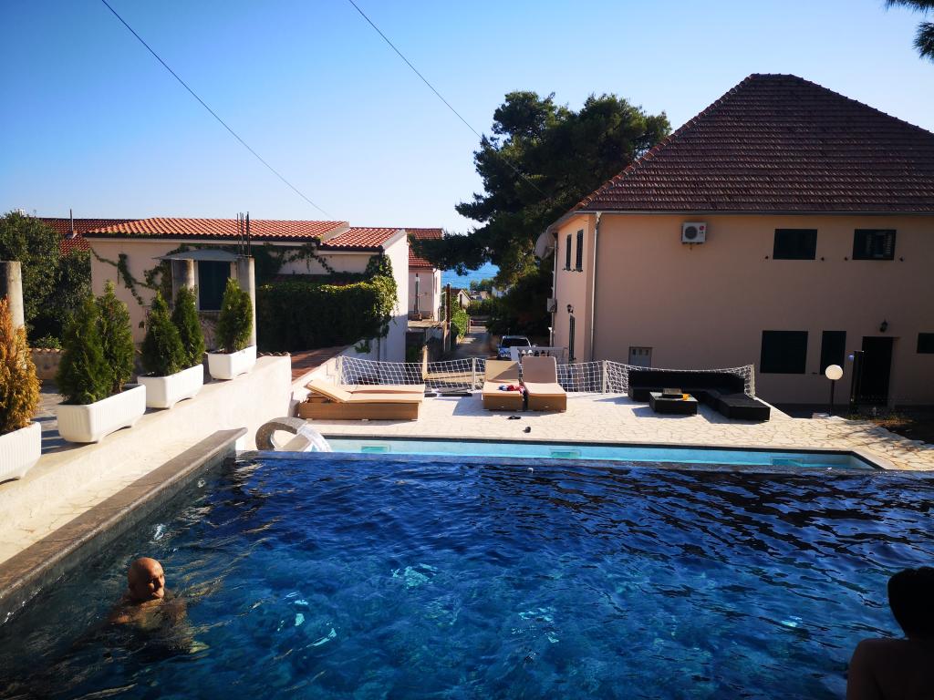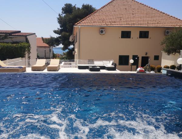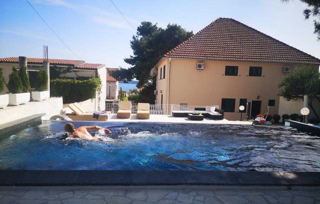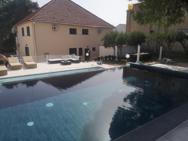 SEA STAR appartementen zijn gelegen in Brodarica, op een rustige locatie in de buurt van de zee. De woning heeft 3 appartementen, appartement A1 bevindt zich op de begane grond en appartement A2 en appartement A3 bevinden zich op de 1e verdieping. Appartement A1 heeft 46 m2 en heeft een keuken met eethoek, badkamer, 2 slaapkamers en een groot terras met een rotan bank en fauteuils en een grote tafel, terwijl appartementen A2 en A3 iets groter zijn, 50 m2, en hebben een keuken, eetkamer, badkamer, 2 slaapkamers en een kleine woonkamer met een bank, een groot balkon. De woning heeft een grote omheinde tuin en beveiligde parkeerplaatsen. Achter het pand is een speeltuin, een tuinhuisje met een grote tafel en stoelen voor 8 personen en 2 verwarmde zwembaden !!! Groot VERWARMD zwembad 8 x 4. 5 x 1. 5 m voor volwassenen met bank voor hydro- en aeromassage en een kleiner zwembad 8 x 3. 5 x 0. 70 m voor kinderen. , ligweide met ligstoelen en een bank. De zee ligt op 100 meter afstand en een nieuw strand met alle voorzieningen (cafés, basketbal- en volleybalvelden, een fitnessruimte) ligt op 300 meter afstand. Wij staan tot uw beschikking voor alle aanvullende informatie en wensen.