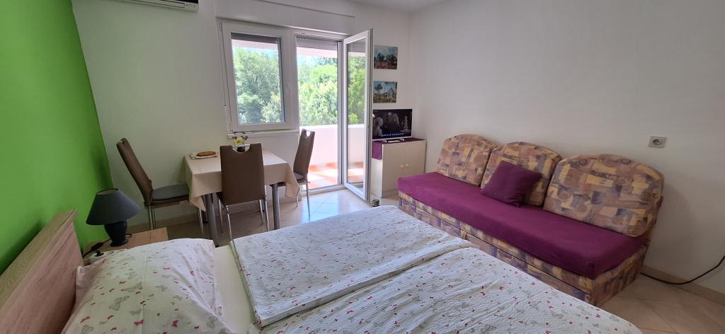 Op de eerste verdieping van het appartementenblok een balkon met uitzicht op bos en groen. Rustig en comfortabel om te slapen. In de buurt is een tennisbaan, een basketbalveld, fietspaden, promenades en de mooiste en grootste olijfgaard van Kroatië. Ook een geliefd gezinsoord voor natuurliefhebbers. Natuurlijke stranden, jachthaven, grill, restaurants, winkels, bakker, patisserie en postkantoor zijn in de directe omgeving van het appartement aanwezig.