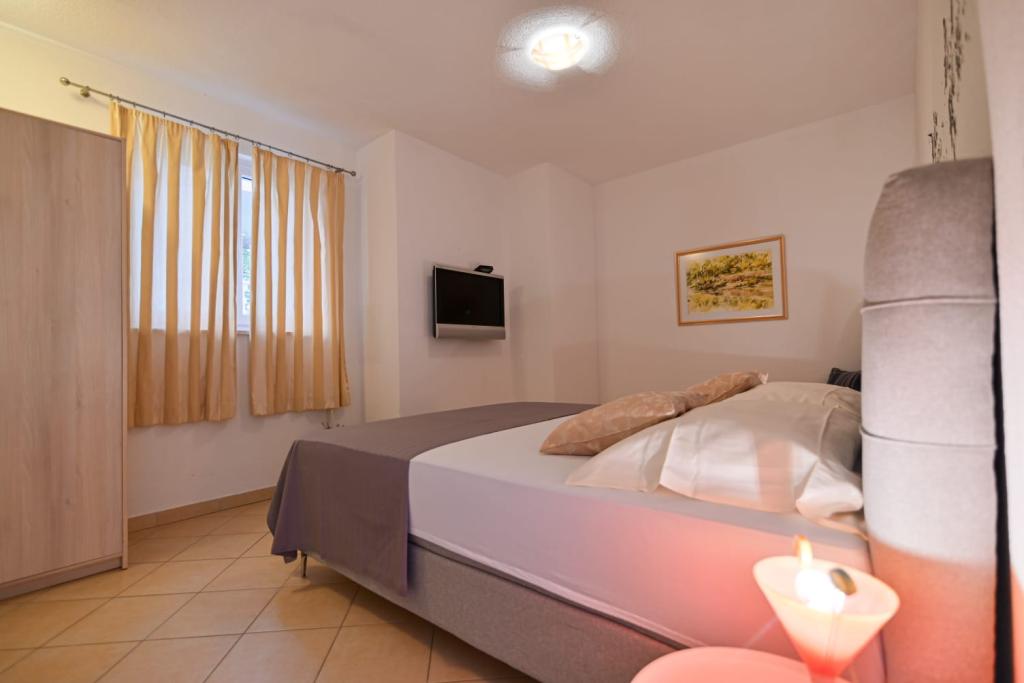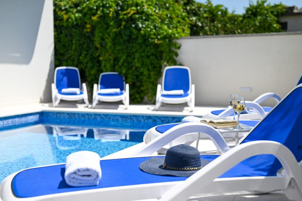 Aan de zuidkant van het eiland Čiovo, dat door twee bruggen verbonden is met de oude en historische stad Trogir en het vasteland, op 200 m van de kristalheldere zee en het strand, bieden wij u een volledig uitgerust appartement met privézwembad . Het appartement met twee slaapkamers bevindt zich op de begane grond, met daarvoor een privézwembad en grill. Er is parkeergelegenheid binnen het gebouw.