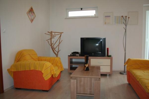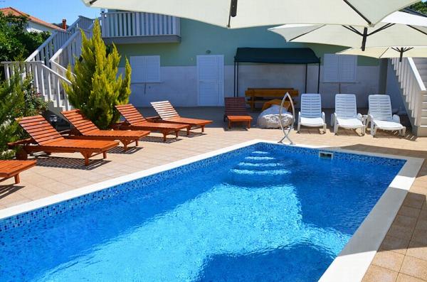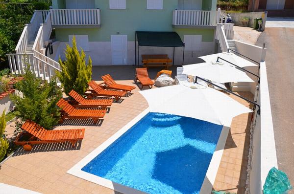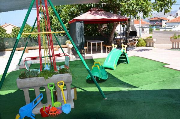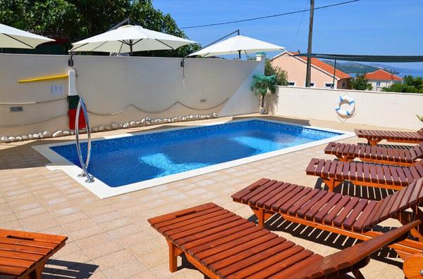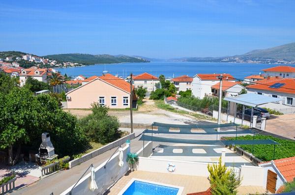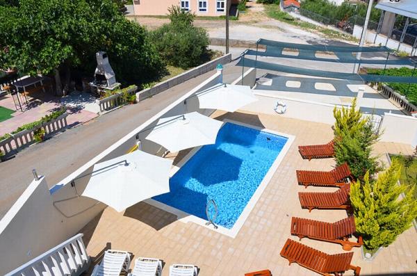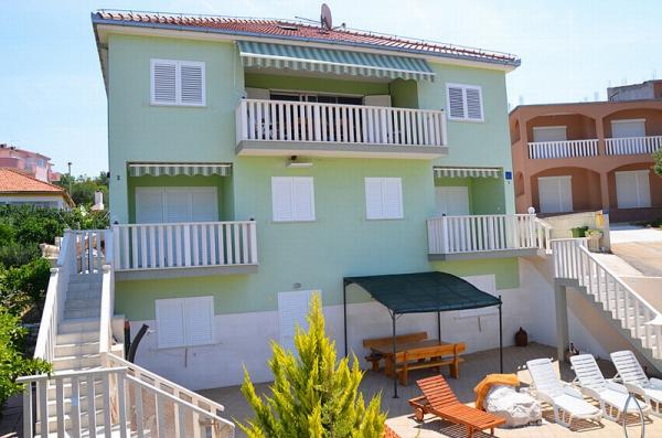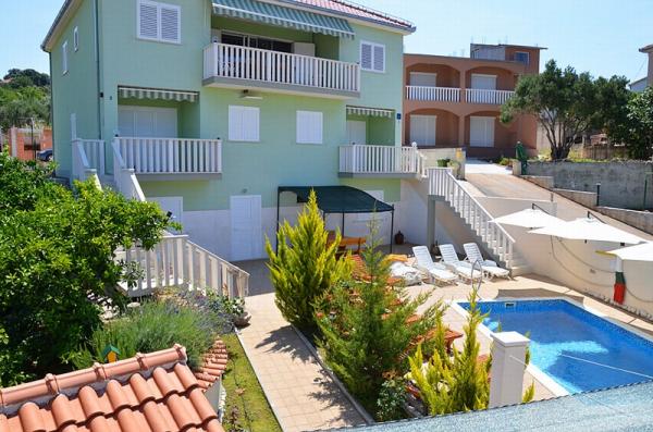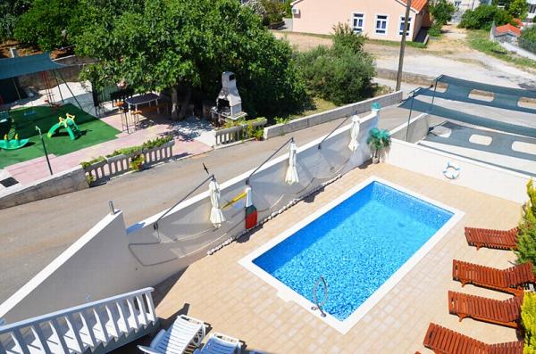 Nieuw gebouwd huis met zwembad en exclusieve woning van 3 appartementen, gelegen in Okrug Gornji op het eiland Ciovo, vlakbij het oude dorp en de stad. Slechts 200 meter van het huis zijn er restaurants, een markt, postkantoor, dokter, apotheek, winkels, VVV, een bakker en een kap- en schoonheidssalon. Twee 4 1 appartement is geschikt voor twee gezinnen. Er is een groot terras groot genoeg voor ons allemaal te genieten van de warme nachten in Kroatië. De meest populaire strand Copacabana ligt op 200 meter van het huis. Het busstation ligt op 20 meter van het huis. Het schip, die elke 15 minuten van de haven Toc brengt u naar het centrum van de stad, ideaal voor gasten zonder auto vertrekt. De gasten tot hun beschikking hebben, een klein zwembad voor plastic kinderen, speeltuin, trampoline, een zwembad voor volwassenen en een parkeerplaats. Hoge stoel voor kinderen en kinderwagens zijn ook beschikbaar op aanvraag. Family PRGA heet u welkom !!!