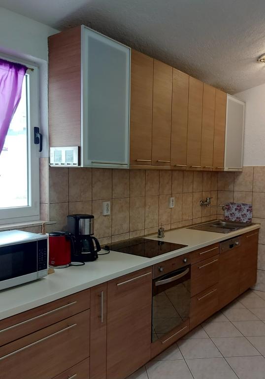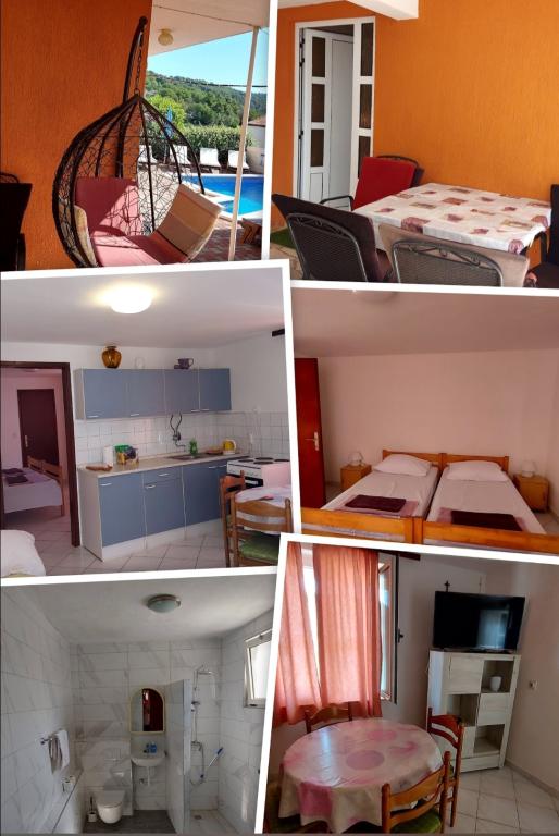 Moderne en eigentijds ingerichte appartementen met zwembad in Okrug Gornji, aan de zuidkant van Čiovo, hebben een prachtig uitzicht op de zee en de eilanden Šolta, Brać en Hvar. De faciliteit ligt op 10 minuten lopen naar het strand, op 15 minuten lopen naar het stadscentrum waar zich een postkantoor, bank, apotheek, supermarkt bevindt... de faciliteit heeft een appartement voor 5 personen op de 2e verdieping, een appartement voor 3 personen op de bovenverdieping. Ieder appartement heeft een eigen verdieping, een eigen entree en een eigen terras en halfoverdekte parkeerplaats. Alle appartementen delen een zwembad, een open haard en een tuin.