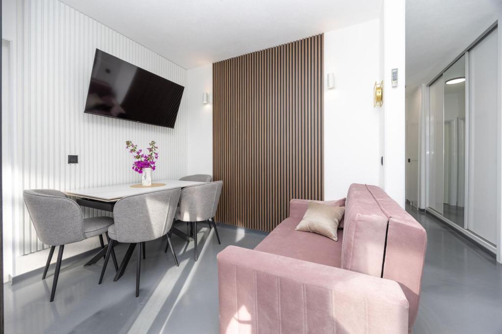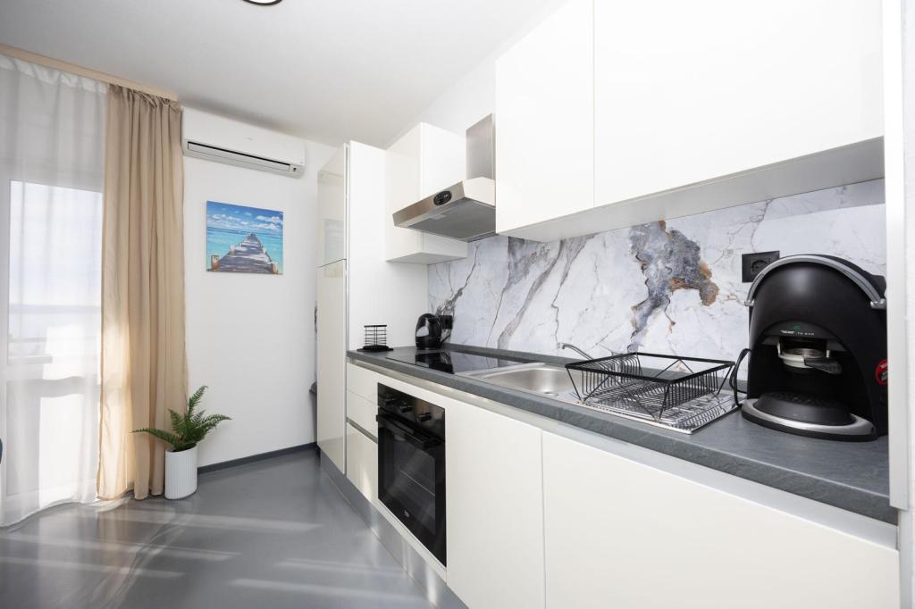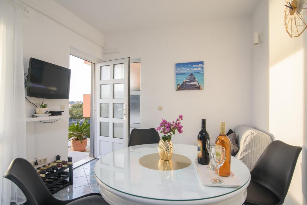 Apartments Nela zijn uitgerust met comfortabele accommodatie, gelegen aan de zuidzijde van Ciovo schiereiland. Meer in het bijzonder, in de baai Movarštica. Het uitzicht strekt zich uit op de eilanden Solta en Drvenik. Vlakbij ligt de prachtige historische stad Trogir, welke lekkernijen met zijn architectuur en entertainment. In de omgeving is er de luchthaven van Split (6 km), de stad van Kaštela (6km), Split (33 km). . Brengt u uw vakantie op een rustige plek, te ontspannen en te genieten van de idyllische zee, Bokun goed eten en een glas wijn en water. Apartments Nela zijn de ideale keuze voor jou. Family Rajcic je nestrepljivo verwacht!