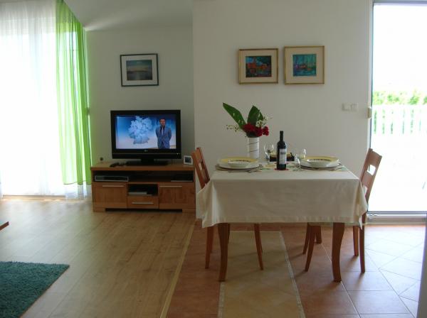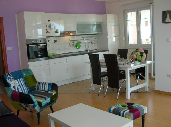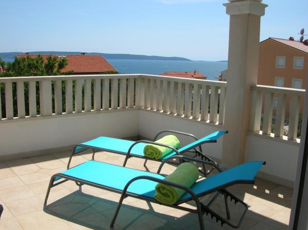 Villa Matane, huis met drie appartementen (4 sterren) in een rustige en zonnige plek op slechts vijf minuten van de zee en het rotsachtige strand. Appartement No. 1 voor 2 personen, 1e verdieping, 50 m2, Zuidoost, overdekt terras (18 m2), uitzicht op zee. Woonkamer met open keuken, slaapbank voor 2 personen (160 cm x 200 cm), 1 slaapkamer met een tweepersoonsbed (160 cm x 200 cm). Appartement nr 2, voor twee personen, 1e verdieping 60 m2, Zuidwest, deels overdekt terras (18 m2), uitzicht op zee. Woonkamer met open keuken. De bank als een bed voor twee personen (150 cm x 200 cm) en een extra bank. 1 slaapkamer met een dubbel bed (2x90 cm x 200 cm). Sat / TV, airconditioning en centrale verwarming. Open keuken, volledig uitgerust met alle nodige elektrische apparaten (4 keramische kookplaat, oven, vaatwasser, koelkast / vriezer, magnetron, koffiezetapparaat en broodrooster), servies voor 6 personen en keukenpapier. In de badkamer (douche / toilet), wasmachine, föhn en handdoeken.