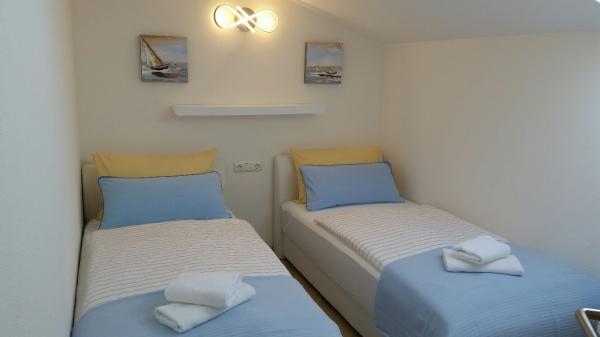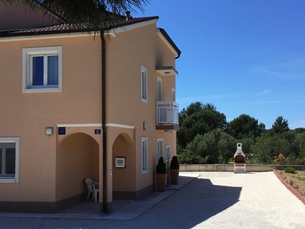 Villa Nikaraoni gelegen op het eiland Ciovo, vlakbij Trogir. De moderne en volledig ingerichte appartementen in het nieuwe huis met slechts 4 appartementen (begane grond, eerste verdieping en zolder). Het huis is gelegen op een rustige en zonnige, met veel groen in de ruime binnentuin (1000 m2). Op de binnenplaats zijn parkeerplaatsen en een barbecue. De balkons zijn ruim en met uitzicht op de zee. De appartementen zijn uitgerust met nieuwe en moderne keuken met vaatwasser, magnetron, grote koelkast, satelliet-tv, gratis WiFi, wasmachine ... De prijs is inclusief beddengoed en handdoeken (geen strand) en het schoonmaken.