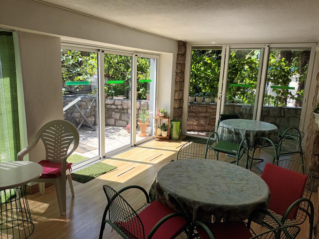 Crikvenica, vlakbij het centrum, op vijf minuten lopen van het strand, tien minuten lopen van de markt, het busstation en het centrale plein. Uitzicht op het groen vanaf de begane grond en de zee. Parkeren is mogelijk op onze parkeerplaats bij het huis, in de tuin of op straat bij het hek.