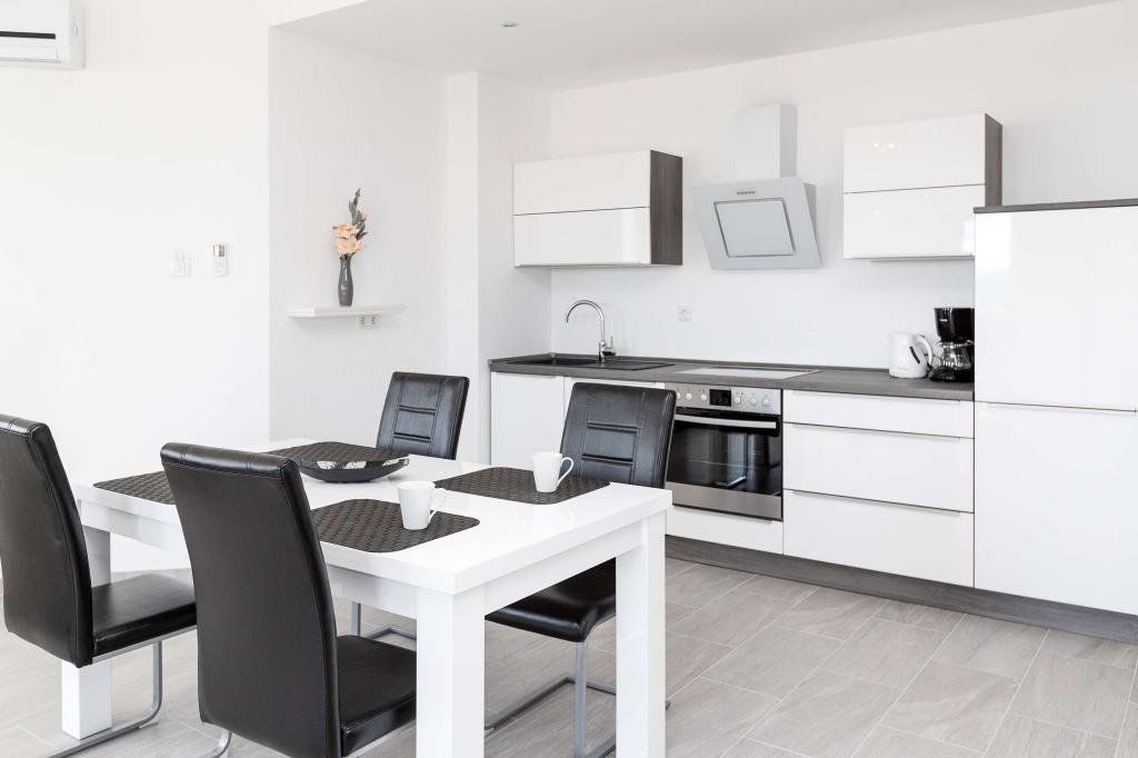 Moderne en luxueus ingerichte appartementen met een extreem groot balkon/terras in een rustige buurt van Crikvenica. Het huis is omgeven door een grote tuin met mediterrane planten. Het ligt op 7 minuten lopen van het strand en op 10 minuten lopen van het stadscentrum.