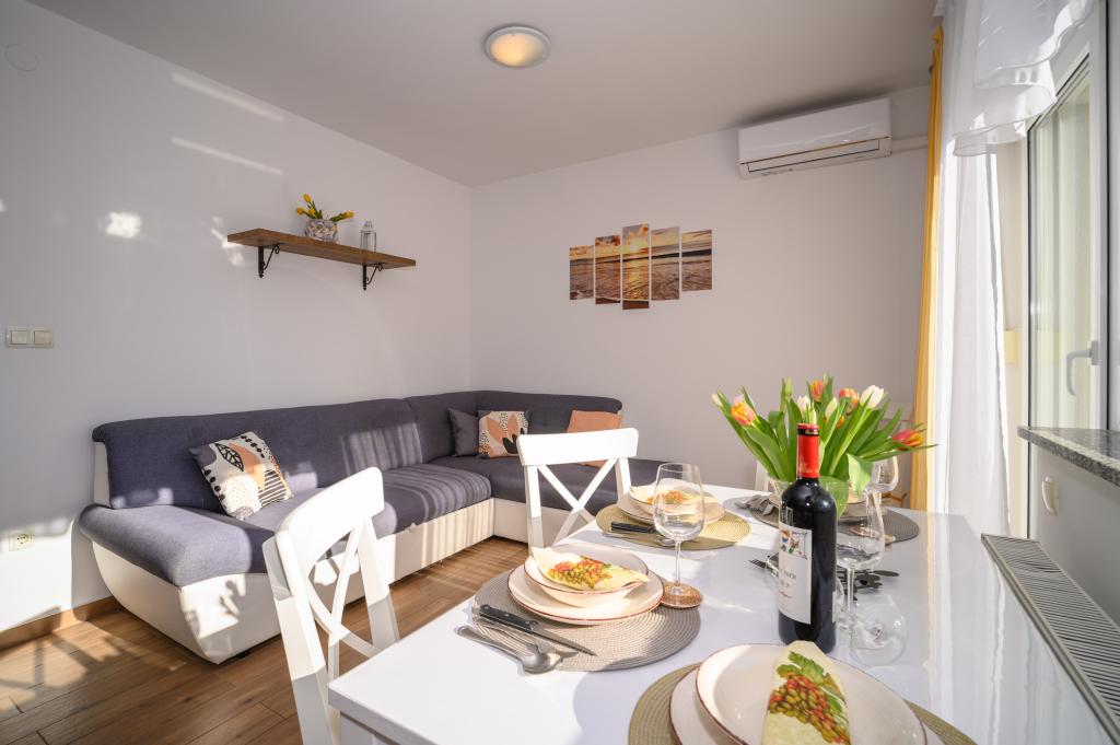 Appartementen op een rustige locatie, op slechts 50 meter van het strand en 100 meter van andere voorzieningen zoals een restaurant, winkel, kinderspeelplaats en sportveld. Elk appartement beschikt over een eigen parkeerplaats en gasten hebben toegang tot een barbecue en een groot terras. De huurprijs is inclusief wifi, gebruik van airconditioning en satelliet-tv. De appartementen zijn nieuw, modern en comfortabel ingericht en bieden een ideale vakantie zonder auto.