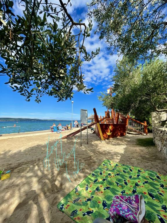 Appartement in Dobropoljana op slechts 150 meter van het zandstrand dat geschikt is voor kinderen en ouderen. Het appartement heeft drie slaapkamers, een grote keuken, een balkon en een badkamer. Wij bieden toegang tot internet en airconditioning. Achter de woning bevindt zich een schoorsteen die u vrij kunt gebruiken. In Dobropoljana kunt u genieten van het prachtige lange strand dat ook kinderactiviteiten biedt van zeeglijbanen, houten boten op de zandbak om te spelen en schommels, tijd doorbrengen in cafés aan de kust of een bezoek brengen aan het oude dorp Dobropoljane. De gastheren staan tot uw dienst voor alles wat u nodig heeft. Naast het oude dorp, dat op slechts 10 minuten lopen van het appartement ligt, is er een weg naar de hoogste top van het eiland Pasman, die een indrukwekkend uitzicht biedt op de eilanden van de Zadar-archipel. Het eiland Pašman is rijk aan fiets- en wandelpaden en Dobropoljana is een ideaal startpunt voor het verkennen van deze paden. Dobropoljana is ook een uitstekend startpunt voor bezoeken aan verschillende attracties in Pašman en Ugljan