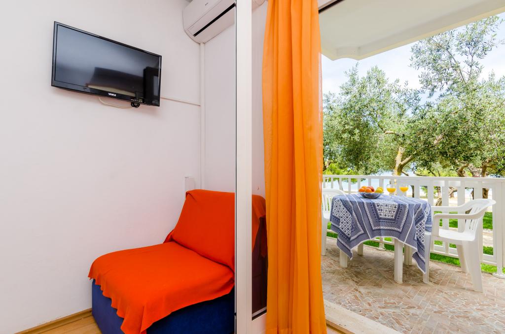 Inlusief wel Toeristenbelasting.Drie ligbedden per appartement op het strand. Airconditioning. Aanlegplaats voor een boot.