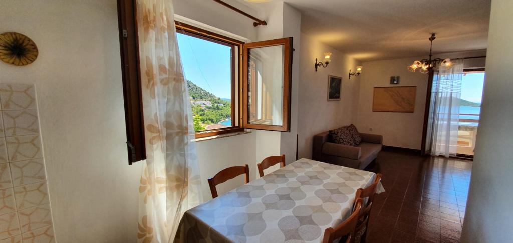 Iets moois. Een ideale plek voor een rustige vakantie, een rustig stadje met mooie plekken om te zonnen. Nog een paar treden klimmen en we staan op het strand. U kunt kiezen tussen schaduw onder de pijnbomen of zonnebaden op betonnen en rotsachtige plekken, met ladders en trappen die naar het kristalheldere water leiden. Het appartement is schoon en volledig uitgerust met een adembenemend uitzicht. De gastheren zijn erg aardig en behulpzaam, er is zelfs een garage voor je auto. En meneer Luka biedt zijn eersteklas rakija aan. Ik raad het ten zeerste aan.