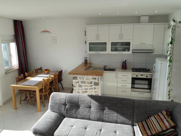 De inrichting is gelegen in de eerste rij naar de zee is slechts 1 minuten lopen naar het strand en het centrum. Drasnice bekend om haar prachtige zandstranden, wandelpaden, levendige visserij-avonden en zijn ideaal voor een gezinsvakantie. Ze bevinden zich op een uur rijden van Split, een beetje meer dan 2 uur rijden naar Dubrovnik of 4 uur rijden naar Sarajevo. Het appartement is uitgerust, gelegen op de tweede verdieping. Het bestaat uit: een grote woonkamer met keuken en eetkamer, drie slaapkamers met twee bedden, twee badkamers en een kleine berging.